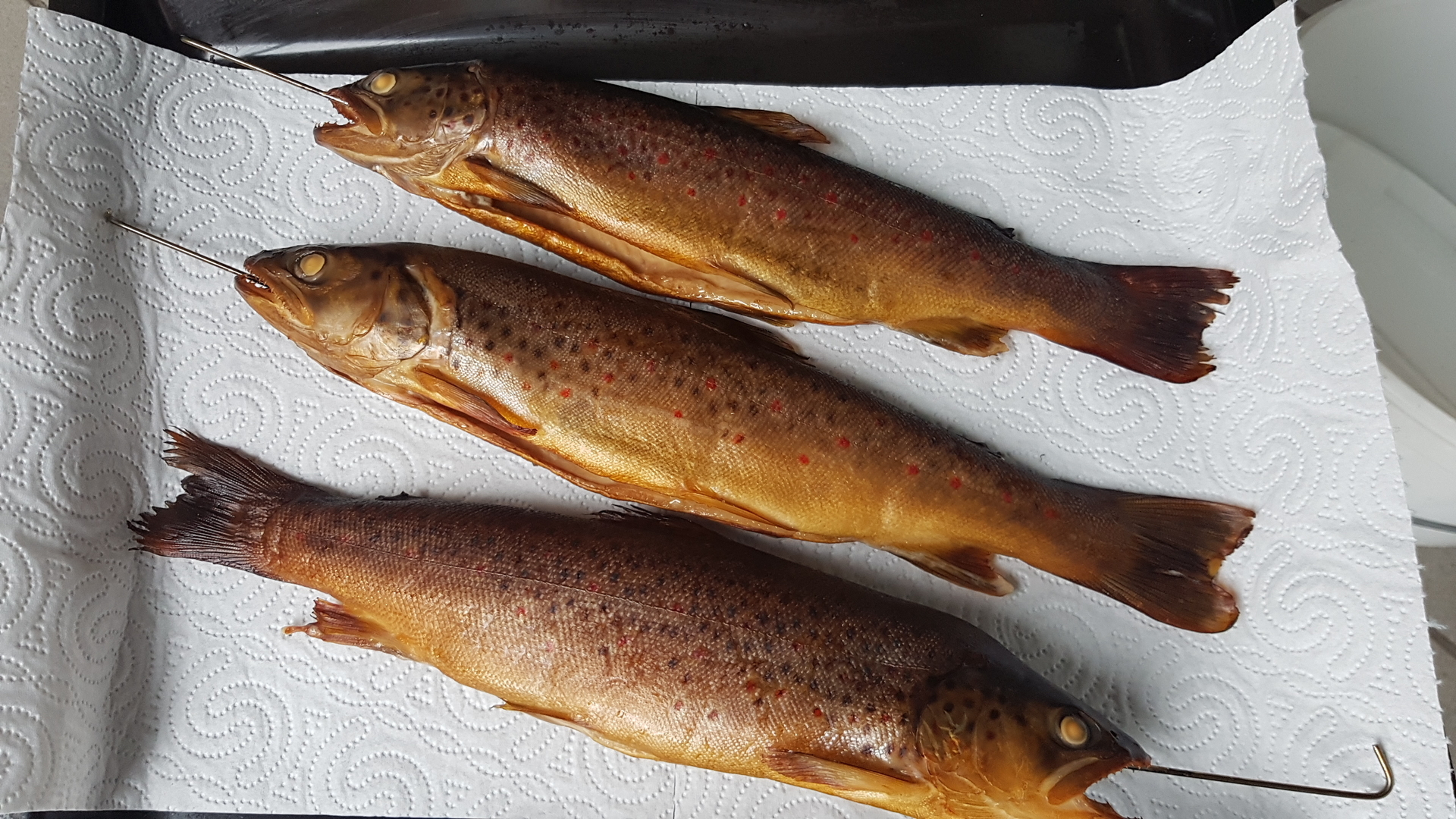 Denk daran Fisch muss außen beim Räuchern ganz trocken sein...Aal muss ganz nass sein