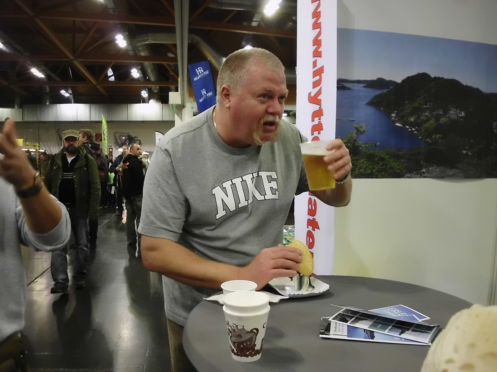 Da Hamburg ja Klinisch tot ist was Treffen zum Schnacken über unser Hobby und Norwegen ist hatte ich mich gestern ja per Bahn auf den Weg gemacht.Das Herum streifen auf dieser Messe bringt viel mehr Spaß wenn man weiß das man nichts kaufen braucht, finde ich jedenfalls.Am Stand ein paar nette Gespräche bei Kaffee gehabt, den Neuen Mod Iceroom kennen gelernt (netter Zeitgenosse).15Euro für geräucherten ThunfischLC:) und 110gr Lachs ausgegeben und 4,50Euro für 3 Lose ,ergab eine kleine Spin-Stationär-Rolle die ich Gott sei Dank an unserem Stand gleich wieder losgeworden bin