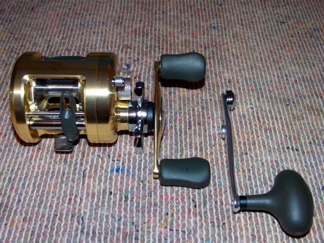 Beispielbilder einer KastKing Royal Legend,innen die Fliehkraft- außen die Magnetbremse.