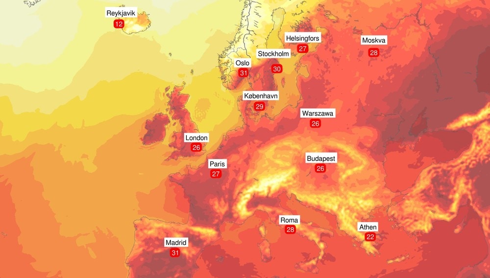 30-34°C in Oslo.....man erwartet neue Rekordwerte.