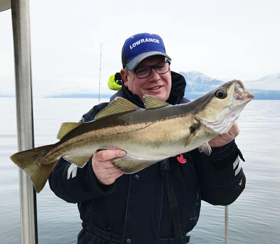 Der erste Tag auf dem Wasser der Reise zum Romsdalfjord ist rum und es wurden auch schon einige Fische gefangen. Neben schönen Pollacks wurden auch Seelachse, Dorsch, Leng und noch andere Arten zum Landgang überredet. Nach einen deftigen Abendessen steht heute Abend Echolot Theorie Schulung auf dem Plan. Morgen früh geht's dann wieder an die Angelei und Echolotpraxis.