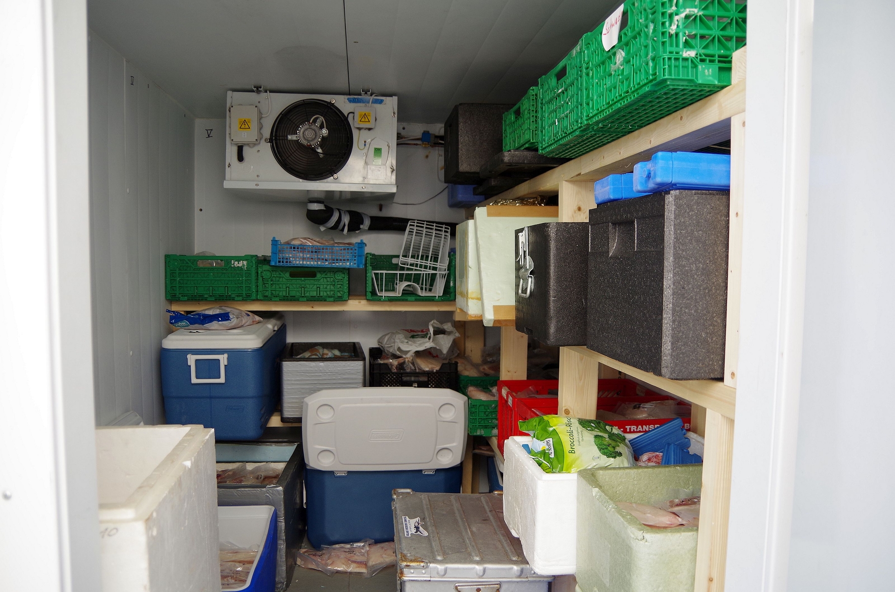Links das Gefrierhaus und dann das Gemeinschaftsgebäude in derem Obergeschoss die herrlich schmeckende