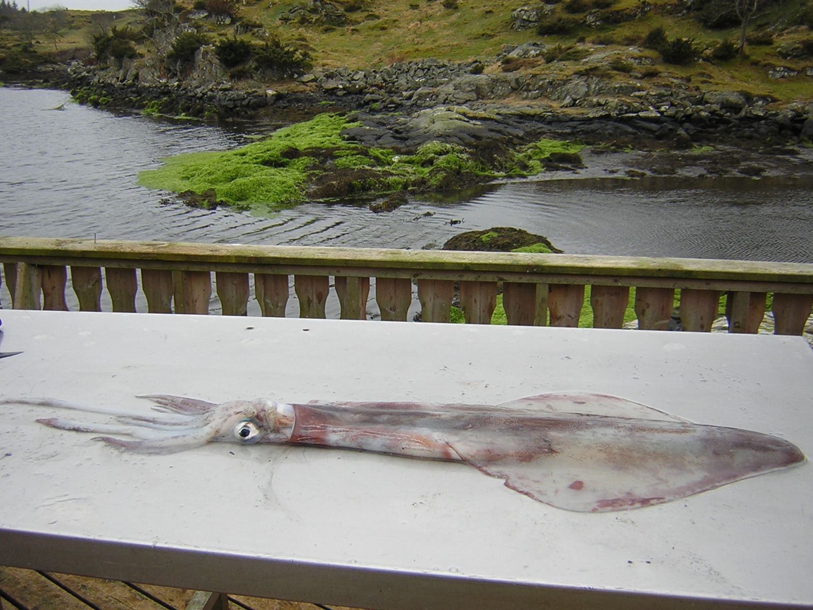 ich habe 2007 am Sognefjord ( Svanholmbua ) auch einen Kalmar hochgeholt, er sah auch erst, als er aus dem Wasser kam, braun aus.