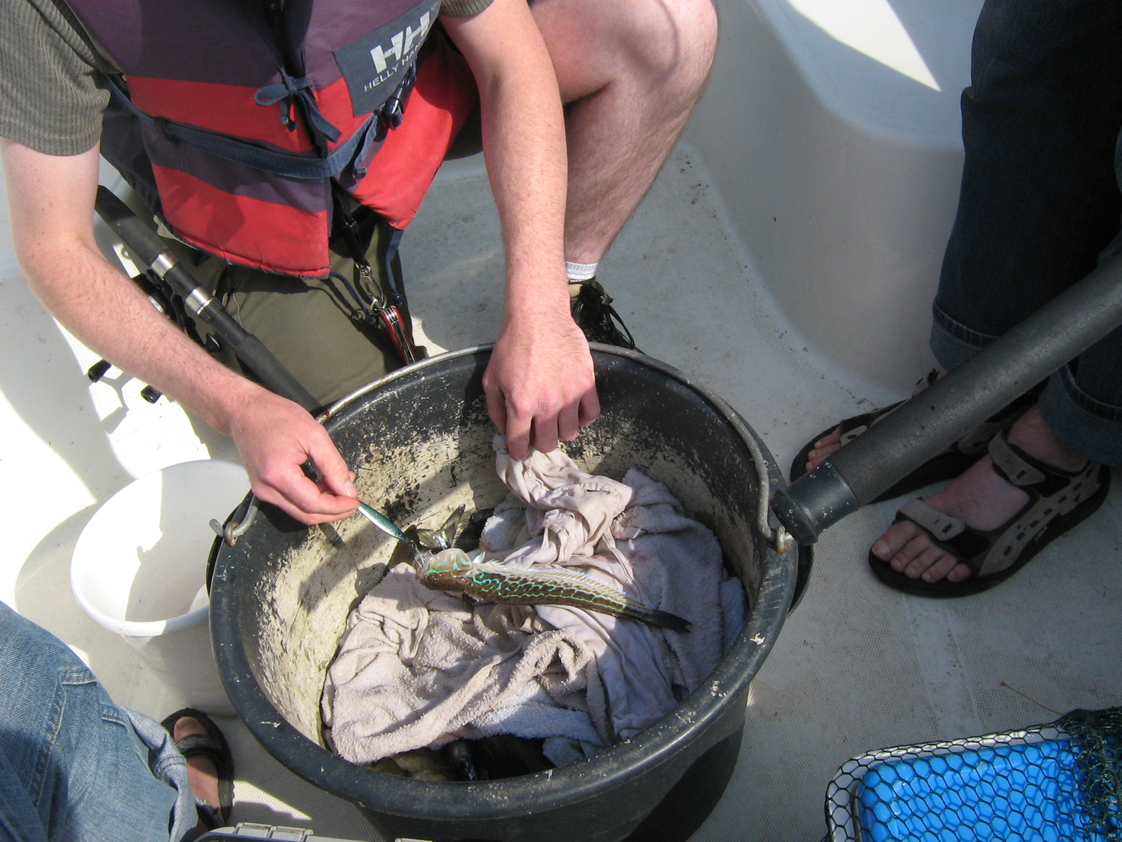 Der Tag begann mit einem vibrieren der gesamten Wohnung und einem ratterndem Geräusch.Ein Blick auf die Uhr 7.10 Zimmertür auf und in vier müde Gesichter geblickt.Auf die Frage ob Sie einen Knall hätten und was das wohl gewesen wäre folgte nur ein müdes Schulterzucken.Na ja egal.Sind ja alle ü 30 und im alter braucht man ja nicht mehr so viel Schlaf.Auserdem wollen wir ja Fischen und nicht ausschlafen.Beim Frühstück dann das gleiche vibrieren und das selbe Geräusch.Dann ein abfahrendes Auto und die Erleuchtung."Der berüchtigte Garagentorantrieb" Nach dem Frühstück,Duschen und auftragen einer dicken Schicht Sonnenmilch ging es auch schon raus auf den Fjord.Das heißt erst mal durch den Fedariver,welches ca.15min und höchste Konzentration in anspruch nimmt.Als erstes wieder zur Felsnase,(Wenn man aus dem Fluss kommt genau gegen über auf 2 Uhr) was 4 gute Polack brachte.Langsam bis zur Brücke driften lassen und hierbei mit 25g Zockern 35 Markrelen von über 40cm länge gefangen.Die größte maß unglaubliche 47cm und das anfang Juni.Unter der Brücke dann mit Heringspatanoster und 150g Pilker gefischt.Vereinzelt kleinere Köhler.Also Vorfächer ab und Speedpilken.Ünglaublich mit welcher wucht schon Köhler um die 50cm da einsteigen.Einfach nur geil.Fünf Köhler über 50cm durften mit ins Boot.Die anderen durften weiter wachsen.Nun wollten wir mal das Ende vom Fjord abfischen und erwischten dort auf einem nur 12m tiefen Berg wunderschöne Tangdorsche.Da wir noch ein bischen Fußball schauen wollten,beschlossen wir zurück zu fahren.Die Rückfahrt wurde nartürlich genutzt.Wir schleppten langsam an den Fjordufern zurück.Dieses brachte auch sofort heftige bisse.Aber bis auf einen Hornhecht waren es immer Markrelen und keine Mefos oder gar Lachse.Wieder angelegt wurden schnell die Fische versorgt.Vier Markrelen landeten im Tischräucherofen und ein Teil der Köhler wurde zuKibbeling nach H.Wittlings Rezept verarbeitet.Fußball mit Kibbeling als Fingerfood und Bierchen statt Chips.Man war das lecker.Nach dem Fußball noch ein paar Obstler auf den Sieg und Lagebesprechung für den nächsten Tag.Große Fische möglichst über 2m sollten her.Also alles klar,morgen geht es raus aus dem Fjord.Eidsfjord,Listaplato oder eine von den anderen Stellen um Hidra sollten das Ziel sein.Noch ein gute nacht Bierchen und ab ins Bett.Im Bett dann noch die Idee das ich ja Ohrenstöpsel mit hatte.Wegen der Schnarcher und so.Also rein damit und hoffen das man wenn man das Geräusch des Garagentorantriebes nicht hört durch das Vibrieren nicht wach wird. -