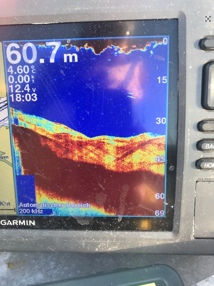 Geziehlt ging es nun daran, die Heringsschwärme zu finden, um den darunter lauernden Dorsch zu überlisten.