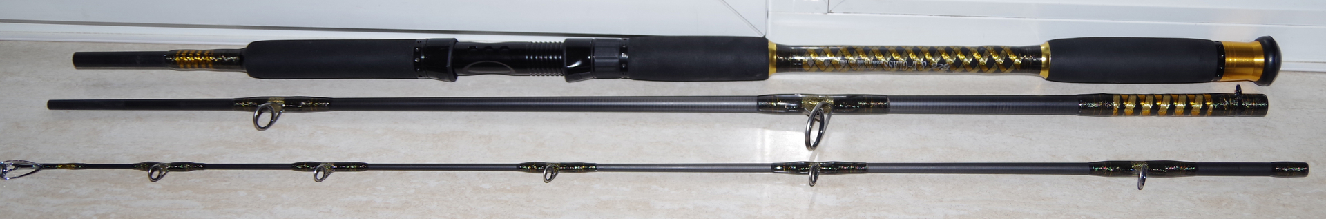 Gesammtgewicht der rute ist 304 gramm, wobei ich im heck, zweck balans, etwa 20gr blei reingesteckt habe. Die rute liegt jetzt perfekt in balans zusammen mit ein Daiwa Freams 4000A.