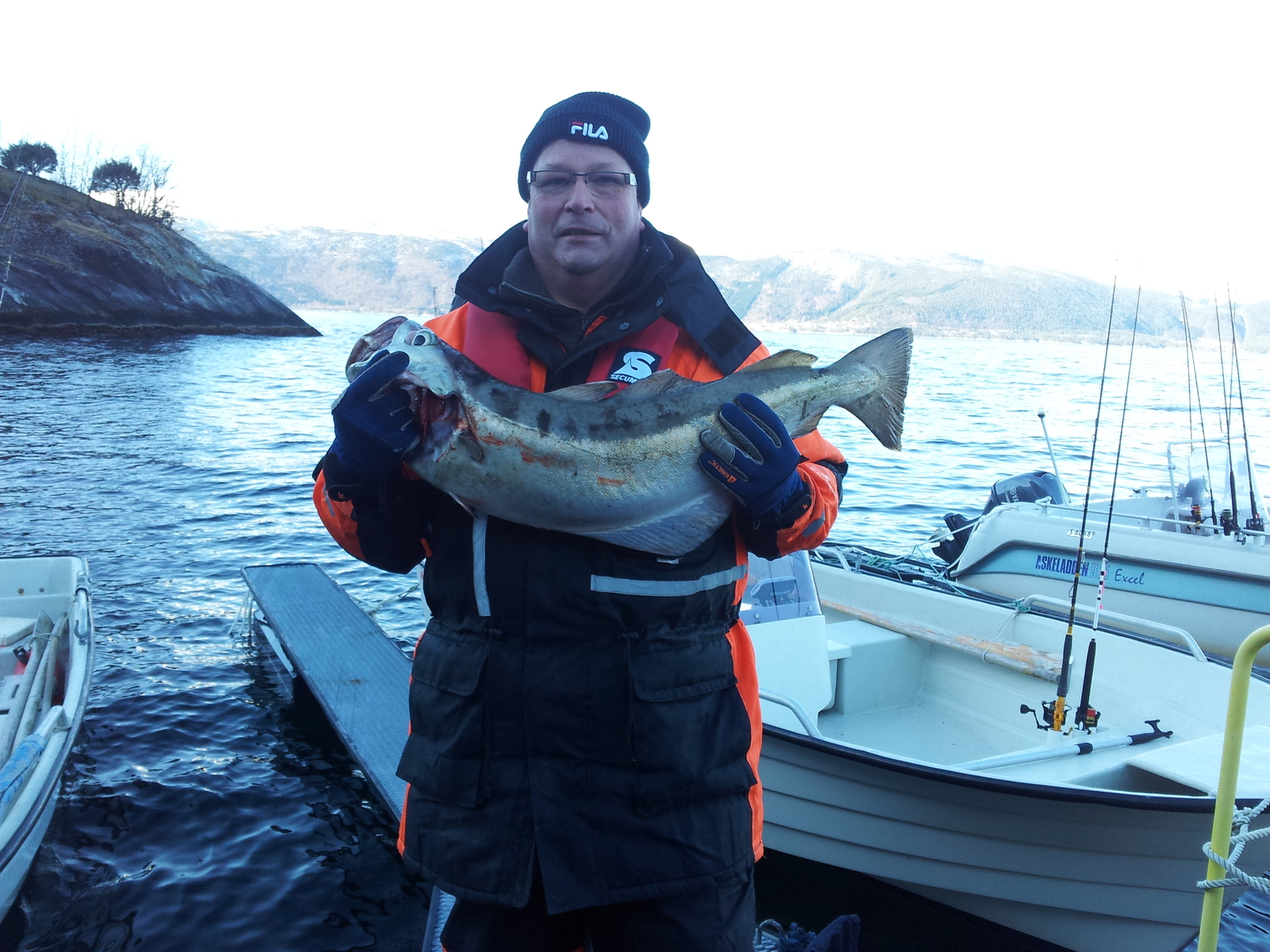 Das Wasser hatte auch nur 3 Grad und die Fische waren beissfaul. Trotzdem konnten wir einige gute Pollacks, einer sogar von 7 kg, aus dem Wasser retten.