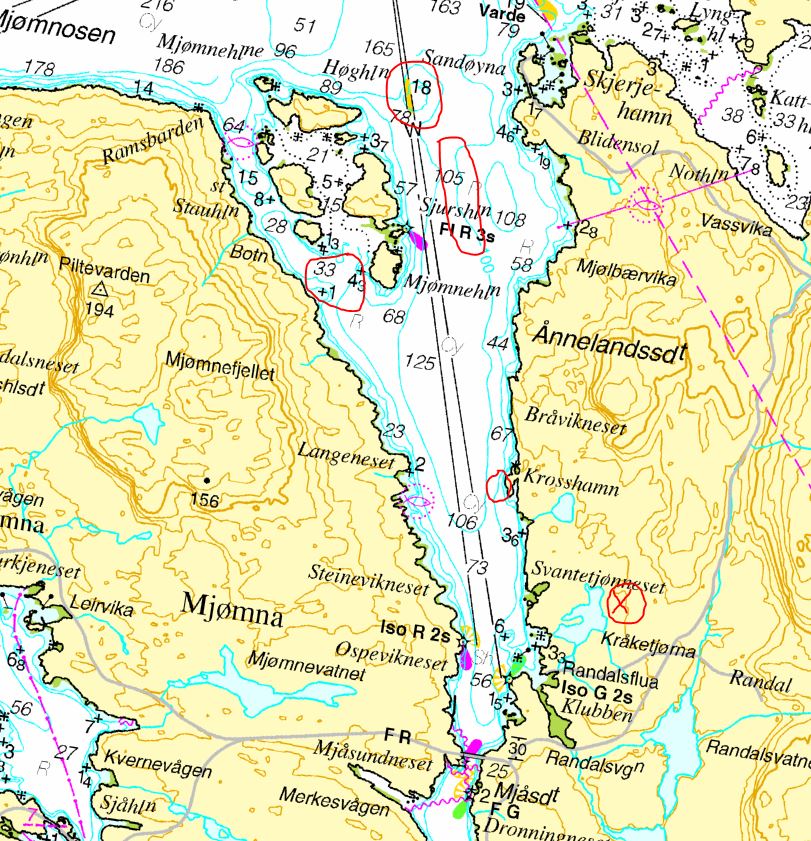 Ansonsten habe ich mal ein paar rote Kreise in Richtung Norden eingemalt. Am Interessantesten war der 18m-Berg, rechts der kleinen Inselgruppe. Aber auch in dem langegzogenen Kreis bei den 105m waren ein paar ordentliche Seelachse im Mittelwasser zu holen.