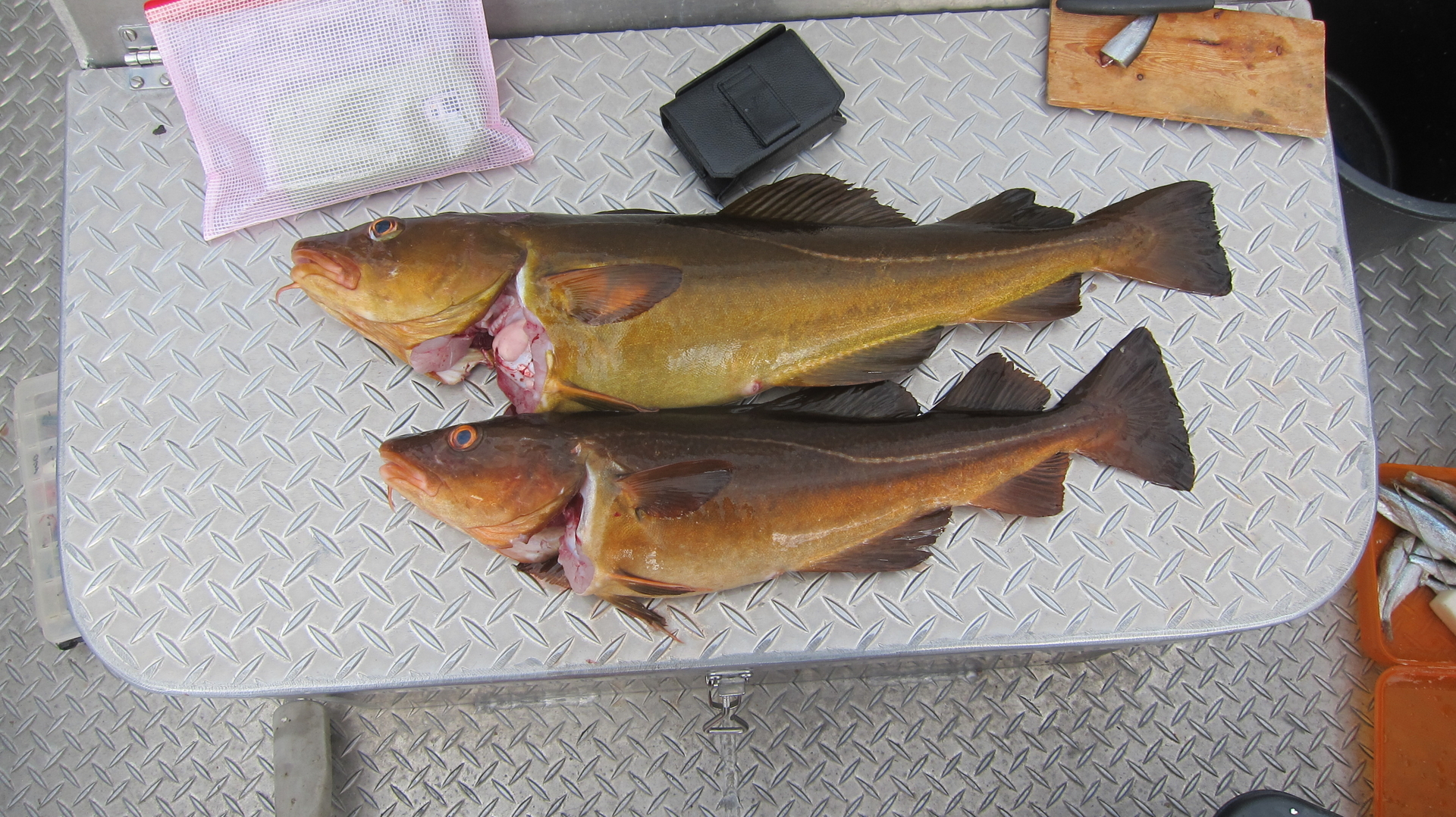 Angeln war wegen starkem Wind nur von 10 - 15 Uhr møeglich. 5 Dorsche, 1 Pollack, 2 Køehler im Bereich 60-80 cm - Rest Kleinfisch.