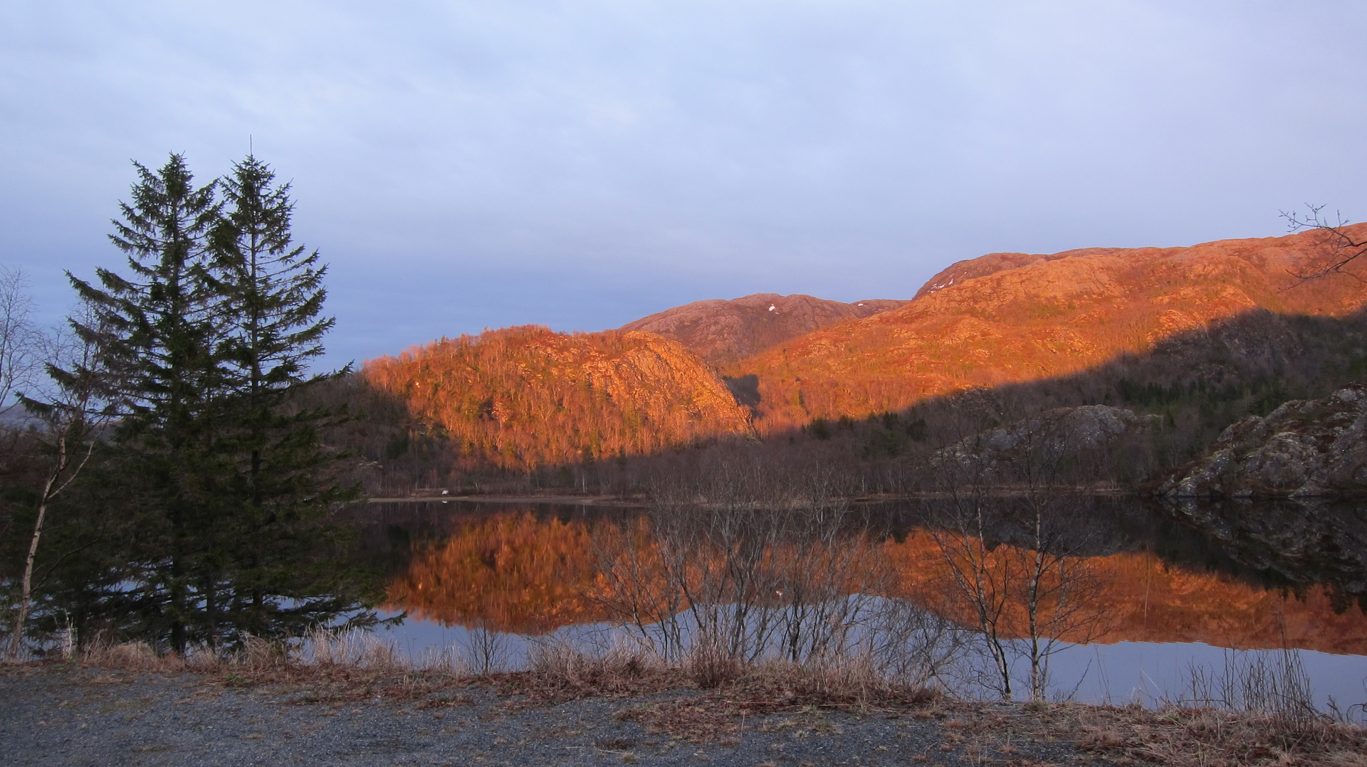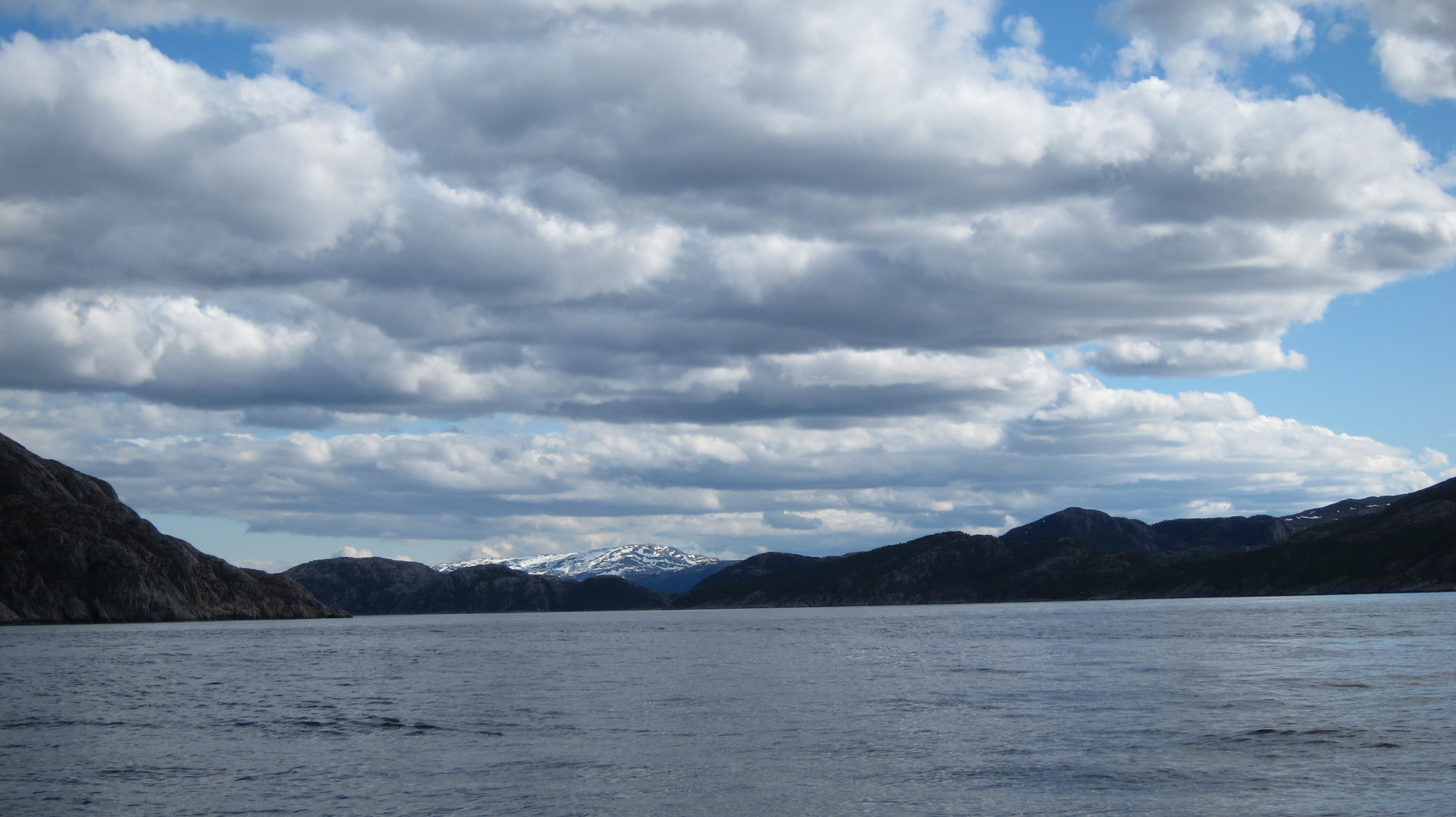 So Freunde hier das Wetter; Sonnenschein, leichter Wind, der Schnee in den Bergen taut - der Fjord ist suess.
