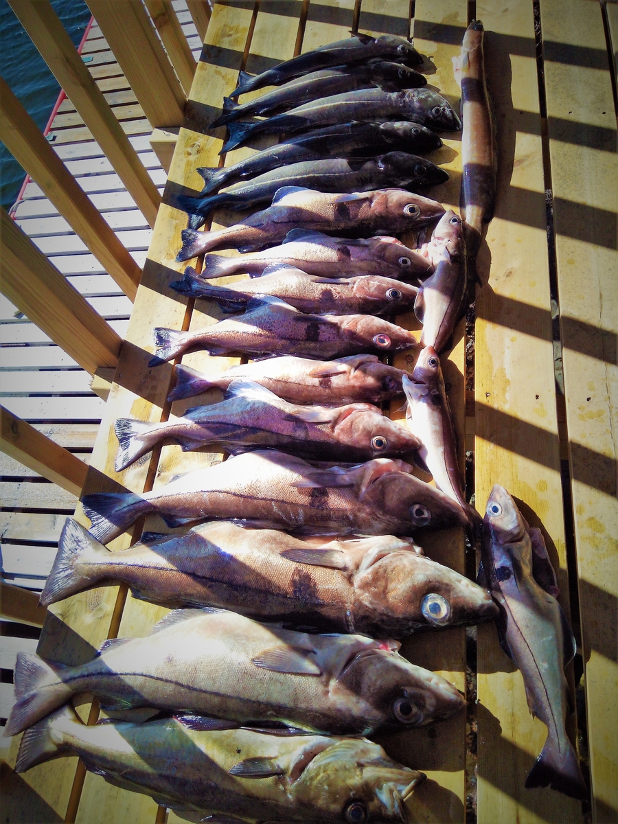 Hat Spaß gemacht. Wir hatten 13 Schellfische mit ein paar richtig dicken Brummern, 5 Köhler, ein Dorsch, einen guten Pollack und einen Leng. Das Wetter war sehr angenehm. Der Wind soll wohl die nächsten Tage auffrischen. Werden uns wohl etwas ins Fjordinnere verziehen. Der "Straumen" bei Kvammen soll wohl sehr vielversprechend sein. Bin gespannt
