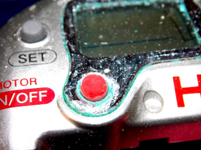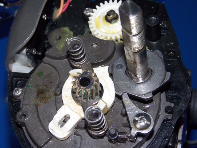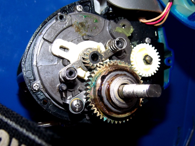 Es war ein Shimano EC3000, die so um 1990 auf den japanischen markt kam. Die rolle sah von innen fast aus wie neu, obwohl man deutlich spüren von benutzung sehen konnte. Die rolle war auch schon mal vorher gewartet, das konnte man sehen an die falsche reihenfolge der zusammenbau der bremse (deswegen war die rolle auch bei mir, weil die bremse nicht gut funktioniert hat). Einfache technik, bombensicher. An die elektronikseite war alles gut abgedichtet mit dichtungen, da war nur wenig mit klebstoff abgedichtet.