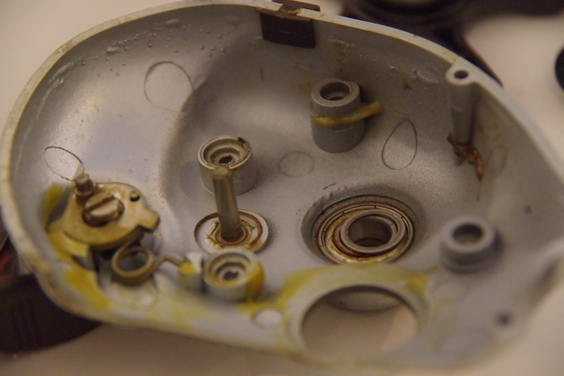 Man braucht schon ein gewisses Grundwissen wenn man da ran geht und oft ne Menge Geduld denn manche Rollen sind schon übel "verbastelt" und ich leg die Sachen auch schon mal bei Seite wenn mir das zu bunt wird denn oft ist man schon am verzweifeln und das können ganz einfache Sachen sein wie ein Kugellager......wenn das z.b so aussieht........