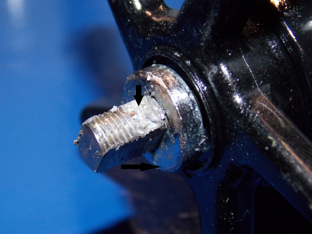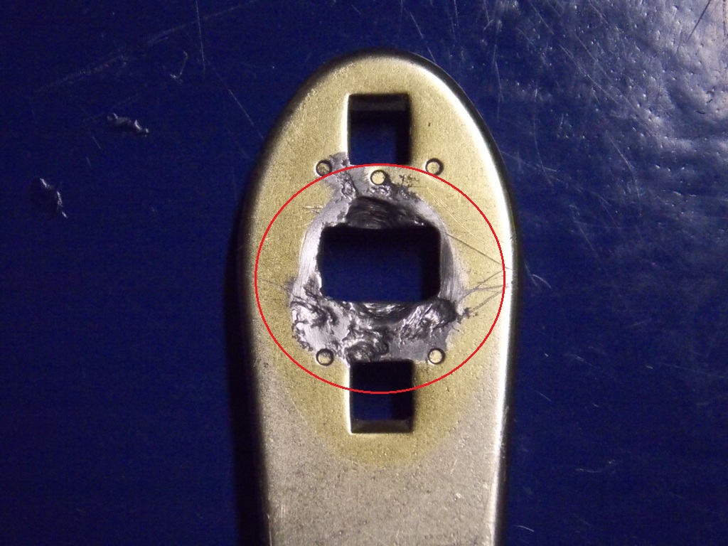 Oberseite der Kurbel,deutliche "Fraßspuren" am Aluminium