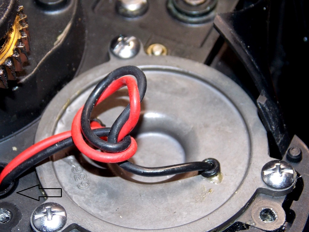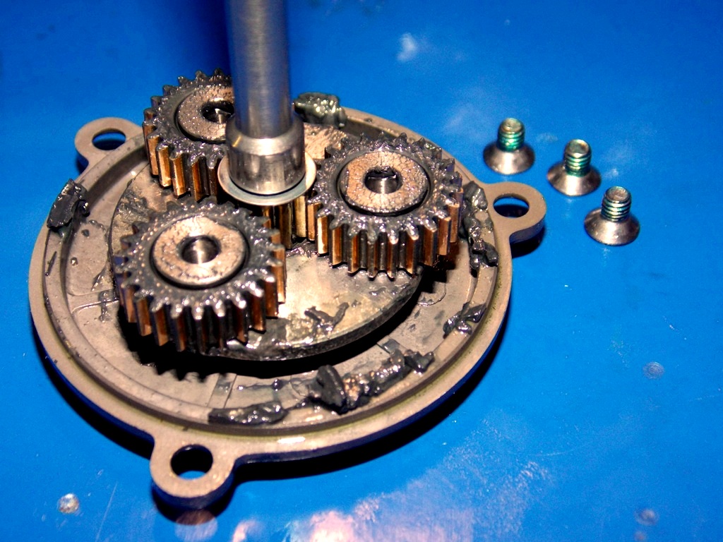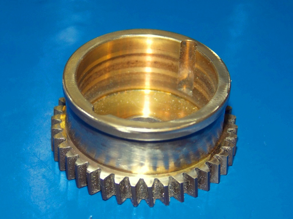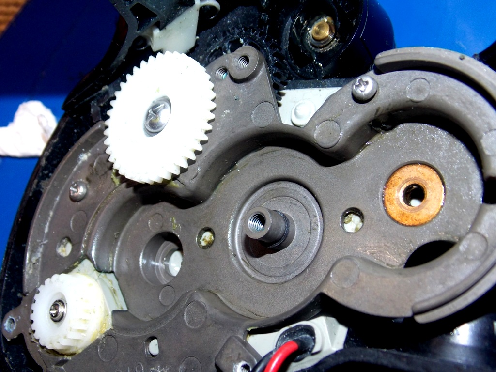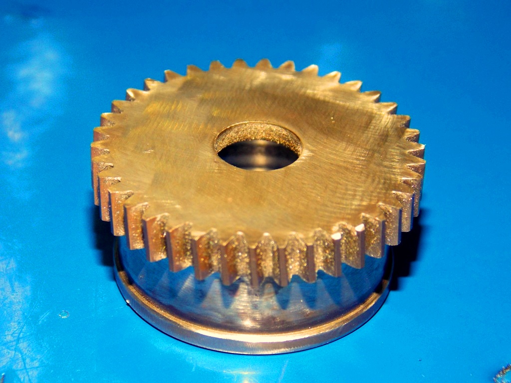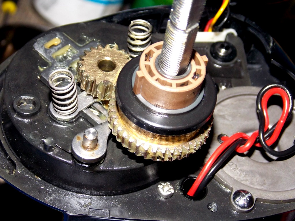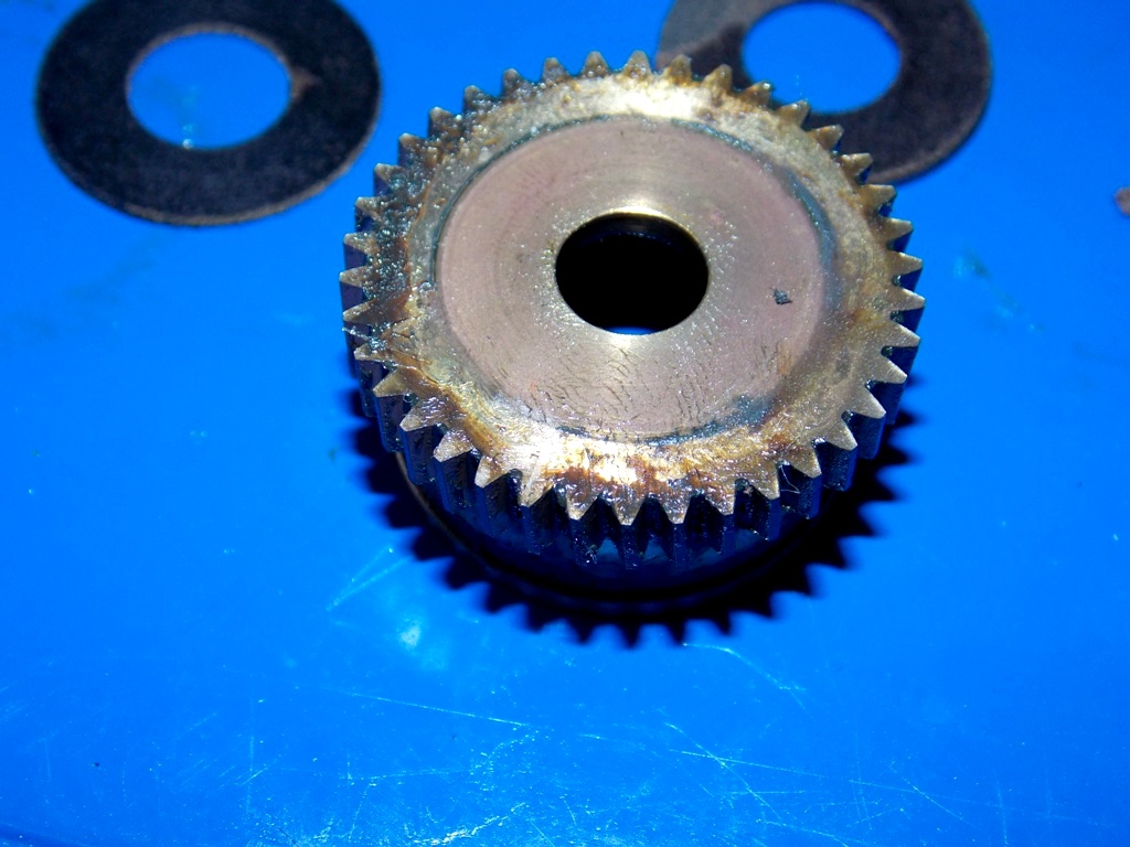 Dieses Zahnrad überträgt die Kraft vom Motor auf die Spule......