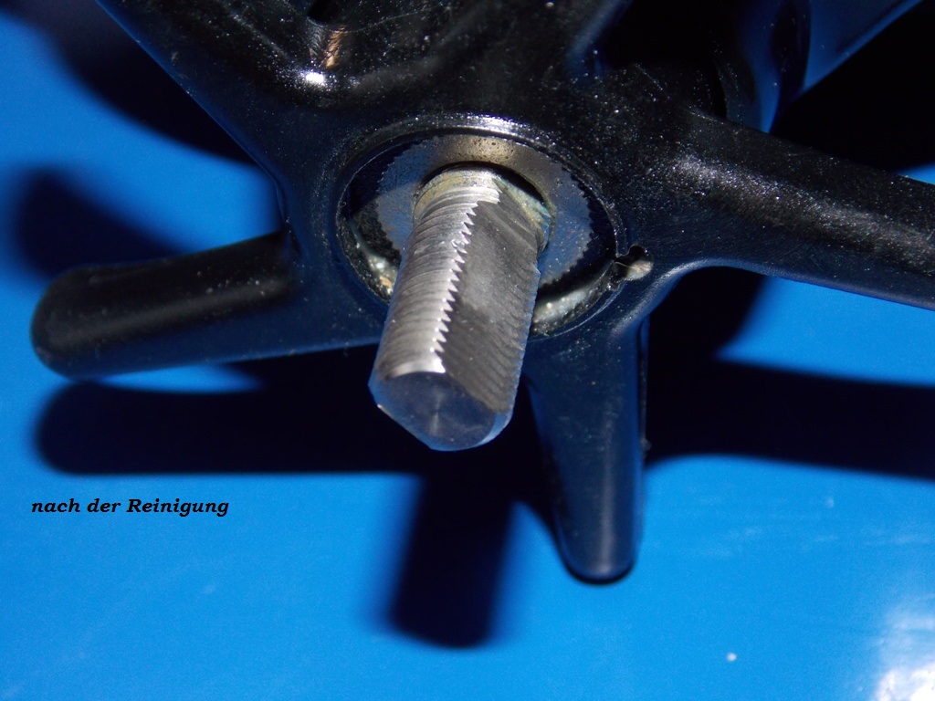 In diesem Fall aber unnötig,Lager war o.k,keine Schäden,keine Geräusche.Öffnen,reinigen,neu fetten und gut.Spool Cover entfernen,3 Schrauben altes Fett entfernen,Spule reinigen..... Planetengetriebe (Motor Gear) nach Reinigung nun alles wieder neu fetten und zusammenbauen...... [/FONT]