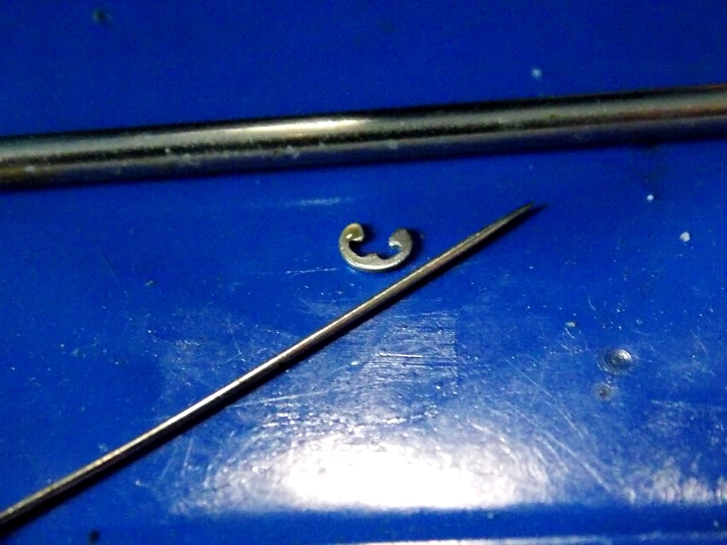 .....hier war ein Seegering kurz vor dem "Abflug" Dieses Zahnrad überträgt die Kraft vom Motor auf die Spule......