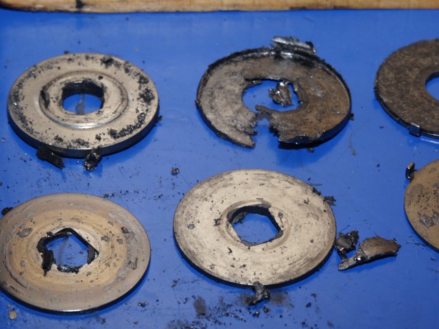 von ehemals 5 Bremsscheiben fehlten 2 komplett,der Rest hatte kaum noch 50% der Originalstärke