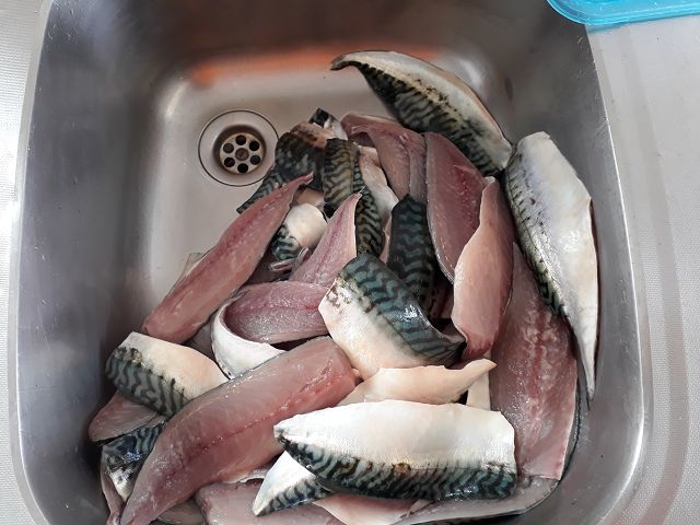 hier mal ein paar Bilder von unserer Makrelenfrostlinie*rolleyes* Da alle Mitreisenden Räuchermakrelenfans sind,war das diesmal unser "Brotfisch, ein Teil Filets aber auch viel Ausgenommen m. Kopf.