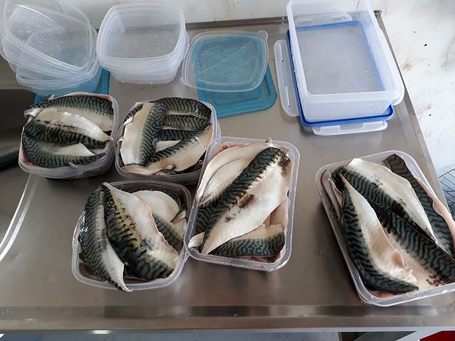 hier mal ein paar Bilder von unserer Makrelenfrostlinie*rolleyes* Da alle Mitreisenden Räuchermakrelenfans sind,war das diesmal unser "Brotfisch, ein Teil Filets aber auch viel Ausgenommen m. Kopf.