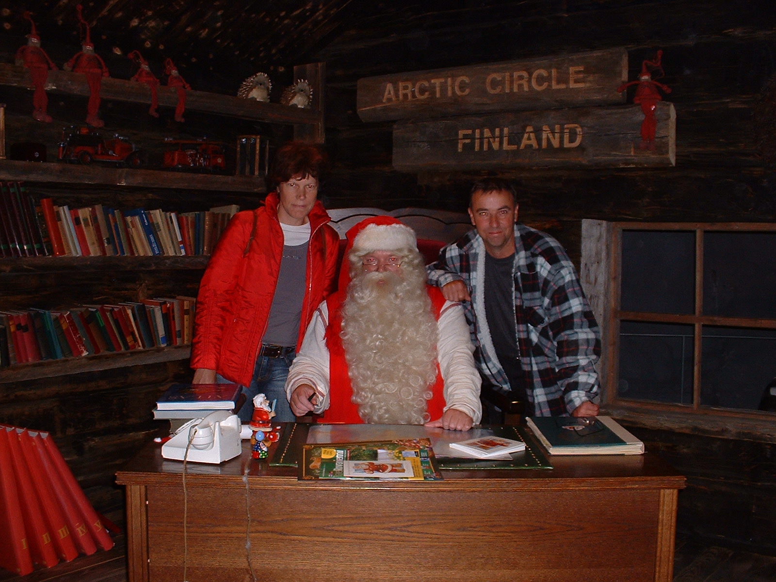 Also , nachdem wir nach einigem Hin und Her dann doch noch untergekommen sind ,haben sich auch die Gemüter beruhigt. Ein wunderschönes kleines Blockhaus ,oberhalb des Ounasjoki war unser zu Hause für eine Nacht .Hier gefiel es uns sehr gut ,trotz Regen ,trotz Mücken,denn die waren plötzlich auch noch vertreten .Zahlreich ,ja ,äusserst zahlreich,ich glaube wir waren die einzigen in der Nähe und nun zogen sich um uns sämtliche Mücken der ganzen Gegend zusammen.Nun nichts wie rein in die neue Heimat.Dort waren die Hyettinnen ,oder so ähnlich der finnische Name,auch schon in stattlicher Anzahl vertreten .Jetzt kam der elektrische Insektenvernichter zum Einsatz ,mit Erfolg.Mann ,ist das ergötzend wenn der seine Stromschläge losliess,mit jedem knacken eine weniger ,ein wares Feuerwerk begann .Irgend wann war das auch zu Ende und wir waren Moskitofrei ,schönes Gefühl.Leider regnete es immer noch ,aber irgendwann hört es auf ,so das gute am Regen ,habe ich in irgendeiner Signatur gelesen ,bloss wann.Was solls wir haben ja Urlaub.Mich zog es dann nach draussen,ich wollte in diesem wunderschönen Fluss angeln,nun Autan hervorgezaubert und Mückenhut auf und ab die Post.Leider hatte der Fluss einiges an Hochwasser ,denn es regnete ja seit vier Tagen,und so konnte ich auch keinen Fisch in unsere Pfanne zaubern .Nicht so schlimm es gab Westerneintopf.Der andere Morgen begann ,nach bewusstlosähnlichem Schlaf ganz komisch . Ich ahnte irgendwas ,es fehlte was .Natürlich das monotone trommeln des Regens war nicht mehr da.Ich raus und in den Morgen gerufen,bei 6 Grad Celsius :Hurra,wir haben endlich Urlaub,oder doch nicht so richtig .Der Regen weg die Hytinnen ,oder wie sie sonst noch so genannt werden waren da und alle auf einmal,Junge ,Junge ,sofort Rückzug.Autan hervor und alles wurde schön .Wir packten unsere sieben Sachen und fuhren ,nach einem kleinen Spaziergang ,weiter nach Rovaniemi.Das war ja jetzt recht Nahe.Eine neue Hütte gesucht ,die vorletzte ab morgen haben wir unser gebuchtes zu Hause,und los auf Erkundung.Zuerst war der Wheinachtsmann dran,der wohnt hier nämlich.Der hat sich mächtig gefreut über Besuch aus Deutschland.Er wohnt im Santapark am Rande Rovaniemis und ist leicht zu finden .Für Kinder ein Muss,aber auch bei uns kamen mitten im Sommer wheinachtliche Gefühle auf.Neben Rentierschlitten,Christbaum ,richtiger echter Eisbar und Printen gab es viele Wichtel (verkleidete Studenten ) eine Menge zu sehen .Dannach zum Napaiiri ,den Polarkreis .Hier habe ich kleine Souveniers erstanden Rentiershirt und Finnmesser,direkt auf dem Polarkreis gekauft.Anschliessend fuhren wir zum Arktikum,das ist das grösste Museum über Menschen die nördlich des Polarkreises leben .Das war wirklich was.Und was soll ich euch sagen ,am Abend waren wir alle drei mehr als zufrieden ,kein Regen und wenige Mücken sogar ein Anflug von Sonne .Der Urlaub begann.Abends habe ich dann noch etwas mit der Spinnangel am nahen Kemijoki,grösster Fluss Finnlands ,versucht für die Pfanne zu bekommen,aber leider wollten nur Barsche ,aber ich die nicht.Nach Selbergekochtem Abendbrot ging es zu Bett.Morgen ja morgen kommen wir an unser Ferienhaus,ein Blockhütte am See ganz alleine für Annett ,Jerry und mich.Aber das ist eine andere Geschichte ,von der ich bald berichten werde.