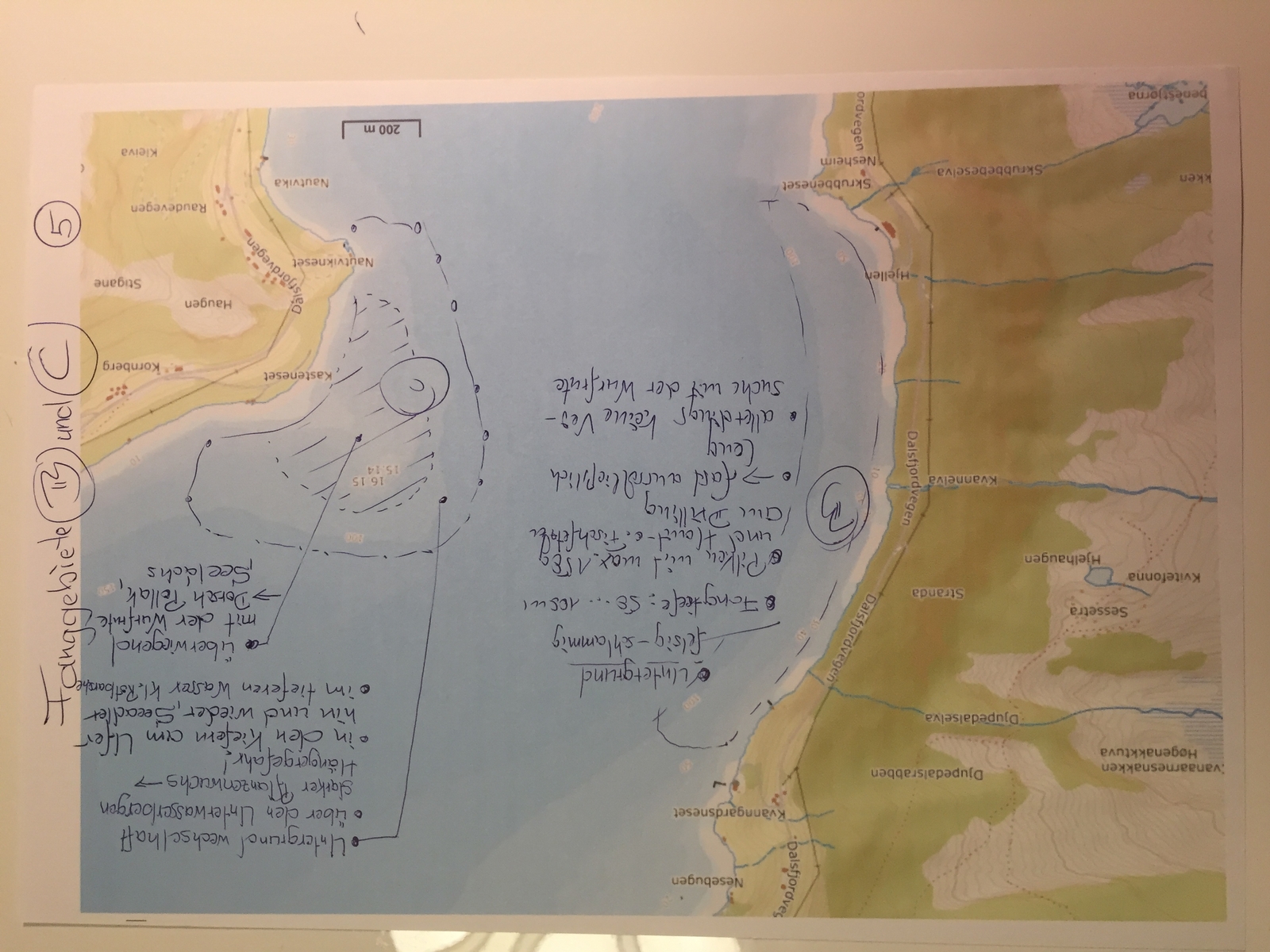 Auf dem Bild 3 sind sehr gut die Tiefenlinien der drei beangelten Gebiete erkennbar.