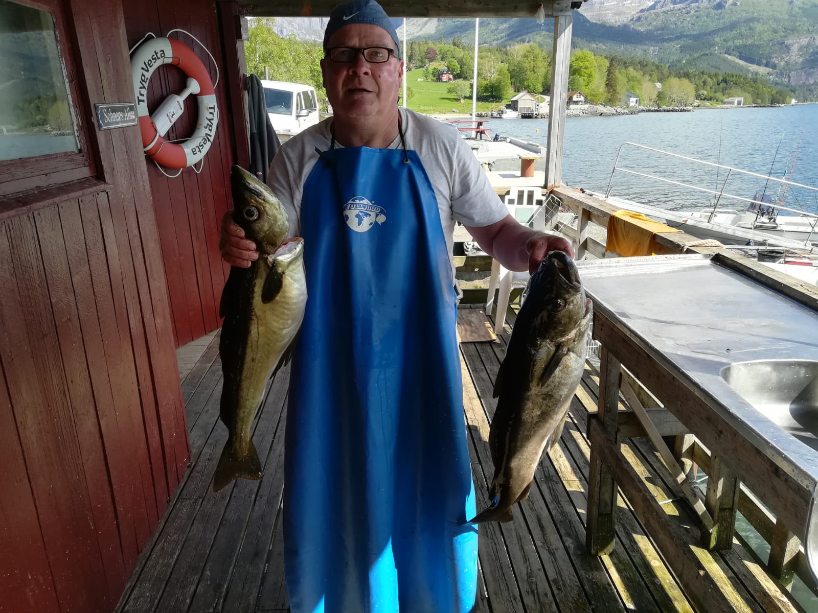 Für den Fisch muss man weit rausfahren (Storflua), aber dort schnaggelt es dann. Zwar nicht die Riesen, aber bis 1m alles was das Herz begehrt: Dorsch, Leng, Lumb, Seelachs, Pollack, Makrele und Schellfisch. Im Fjord selbst klappt es auch, aber dort halt nur die Kleineren.
