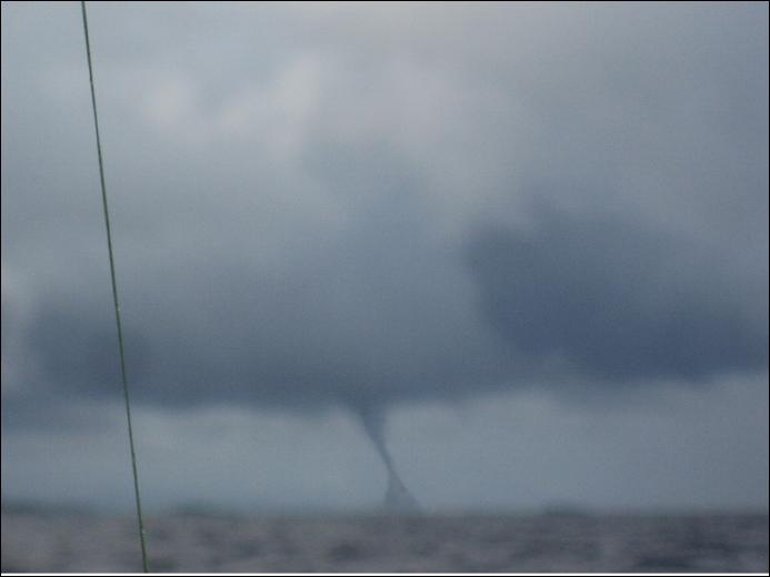 , hat uns eingeholt und die Blitze schlugen in nicht allzu weiter Entfernung im Wasser ein.