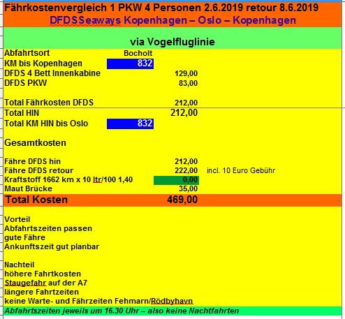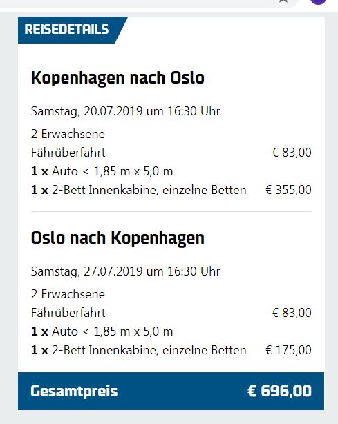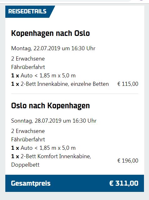 - Total 469,00 Euro incl. Mautgebühr Öresundbrücke