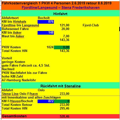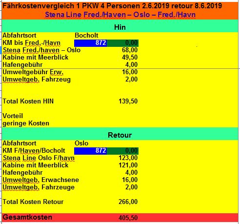 - Total 566,00 Euro, incl. der Fähre Puttgarden - Rödbyhaven - Puttgarden