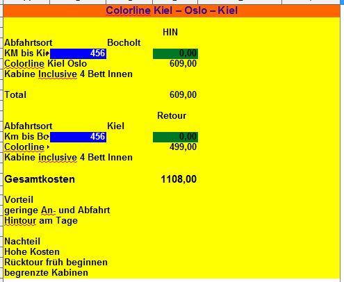 - Total 1.108,00 Euro - falls die "Inclusive Kabinen nicht mehr verfügbar sind, verteuert sich die Überfahrt um ca. 300 Euro