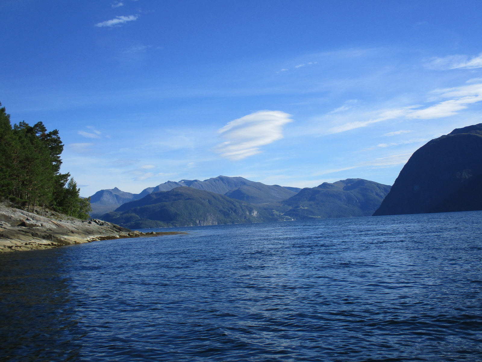 Auf Grund der mir vorher gegebenen Informationen ging es gleich geradeaus ans gegenüberliegende Ufer wo sich der Storfjord noch weit ins Landesinnere erstreckt.