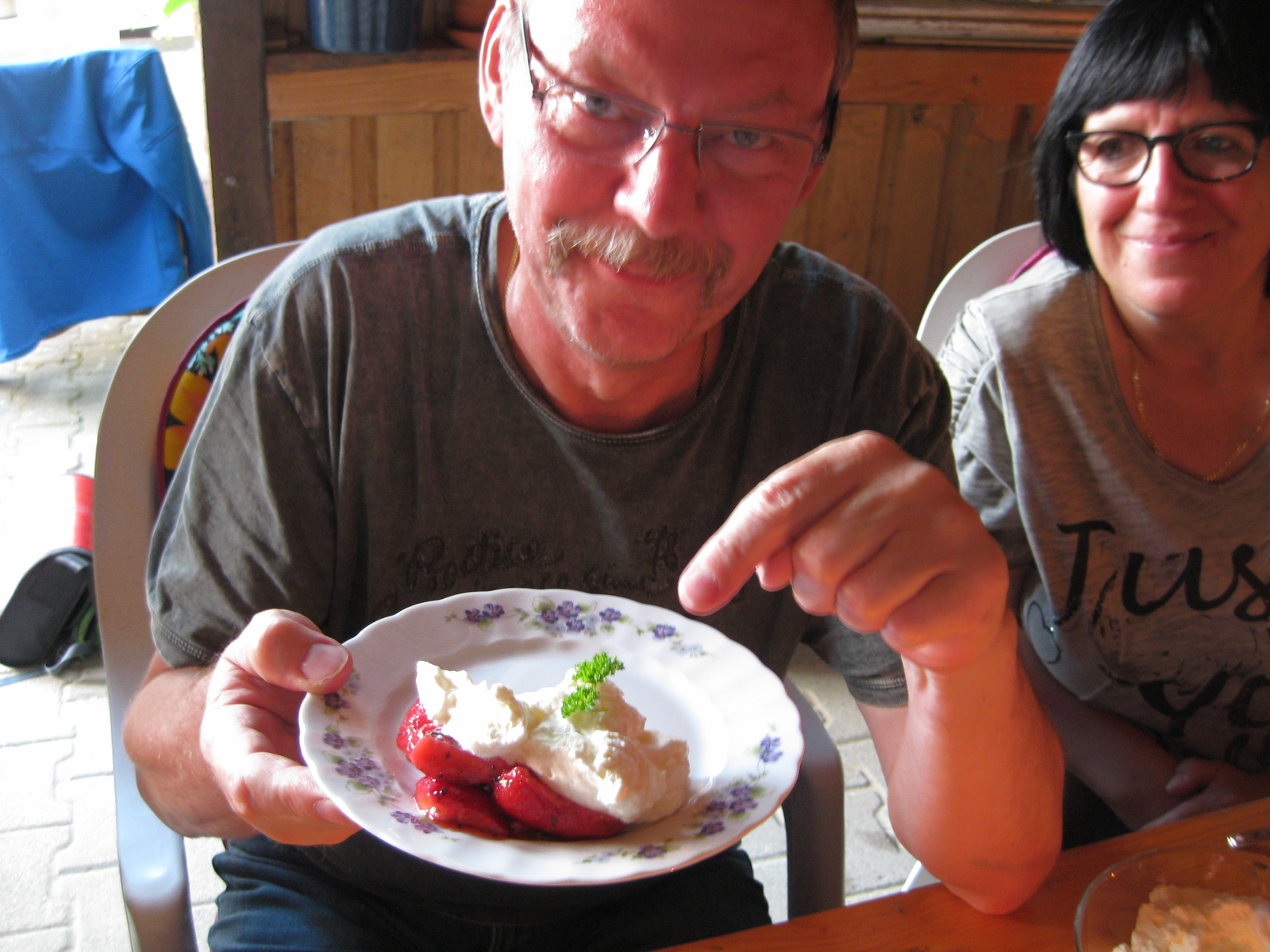 ...aber wir sind ja die Angelfreunde, die eine Genießerecke inkl. Super-Koch Rolf haben, so dass dieser die Sahne dann auch extra für Norbert garniert hat.