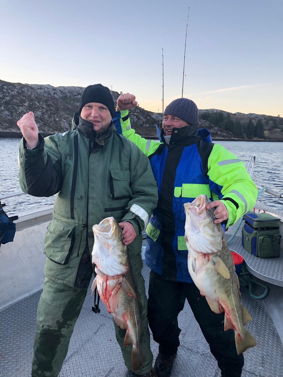 So nun zu heute. Ein klarer Himmel und eisige Temperaturen von -7 Grad begrüßten die Jungs am Morgen. Wie gewohnt standen alle 8 bereits um 7:30 in Booten und machten sich auf zur Jagt. Bei einem traumhaften Sonnenaufgang knallte es auch bald in den Ruten und ein paar schöne Küchendorsche von 70-90 cm landeten in den Kisten.