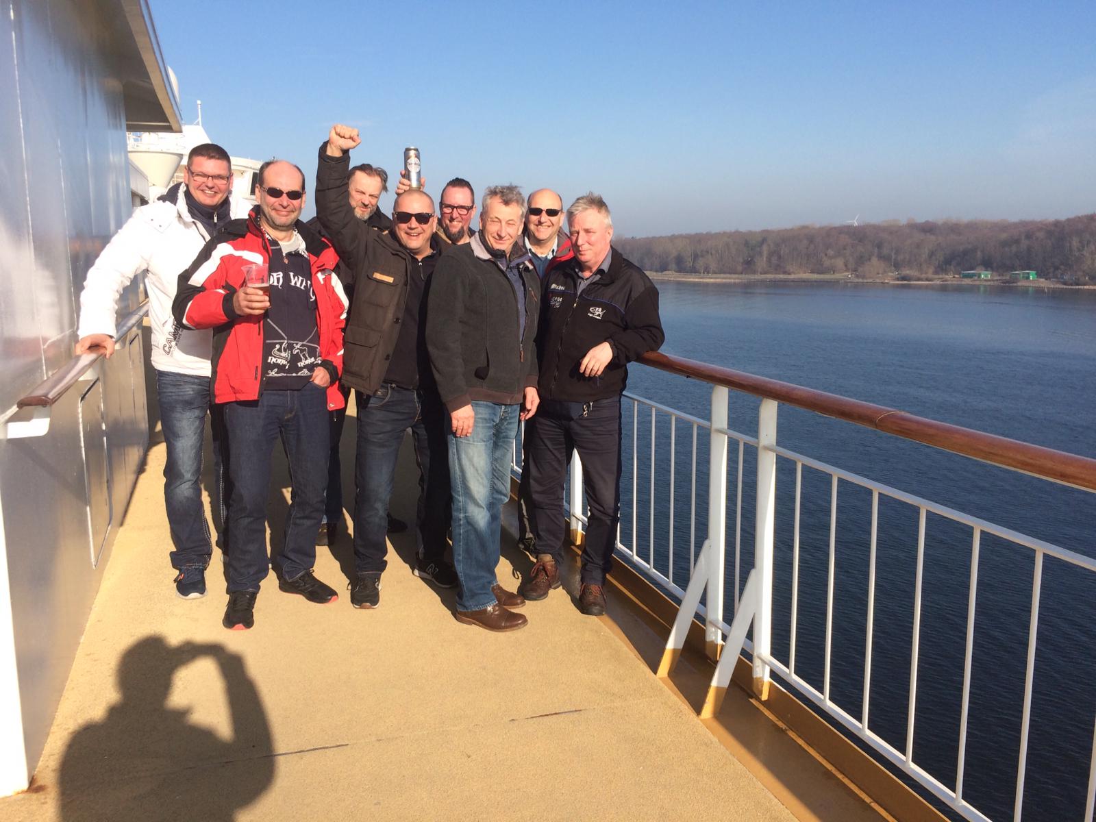 Boot 2 Sven (betritt das Boot und du fragst dich, wo ist der Papagei auf seiner Schulter), Friedhelm (der das 10:00 Uhr Bier bereits um 9:00 auf hat), Bert (unser Bauer, der nie hören kann und seit letztem Jahr weiss, wie man eine Schwiebel schält) und zuletzt, kurzfristig für mich mit eingesprungen der Totti (hat Unterarme wie Poppei und kann alles tragen
