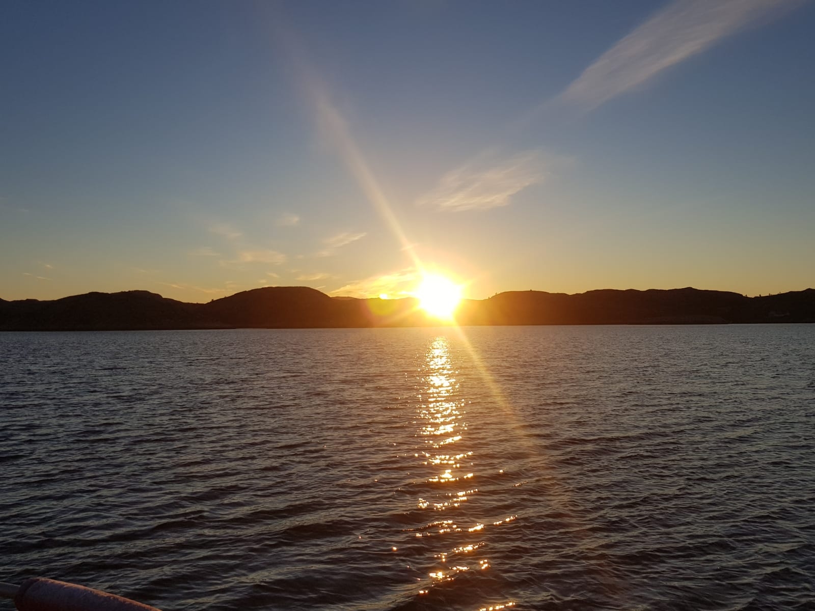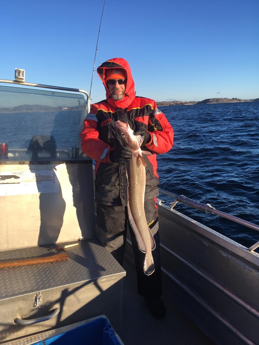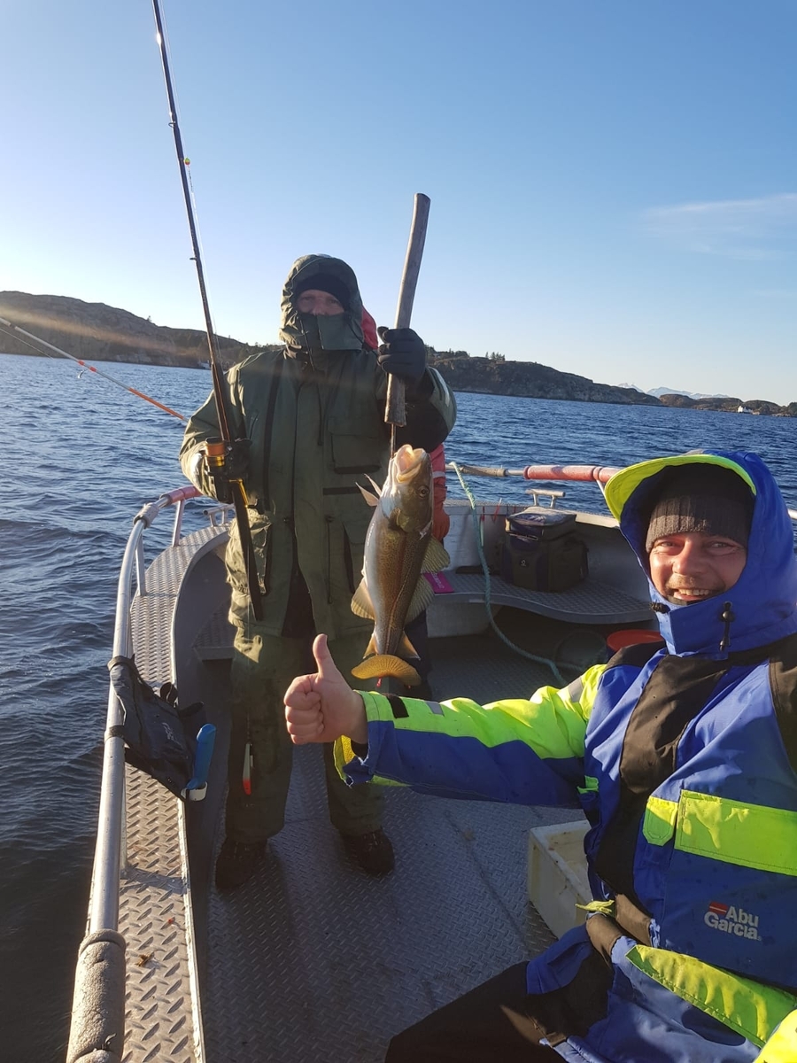 So nun zu heute. Ein klarer Himmel und eisige Temperaturen von -7 Grad begrüßten die Jungs am Morgen. Wie gewohnt standen alle 8 bereits um 7:30 in Booten und machten sich auf zur Jagt. Bei einem traumhaften Sonnenaufgang knallte es auch bald in den Ruten und ein paar schöne Küchendorsche von 70-90 cm landeten in den Kisten.
