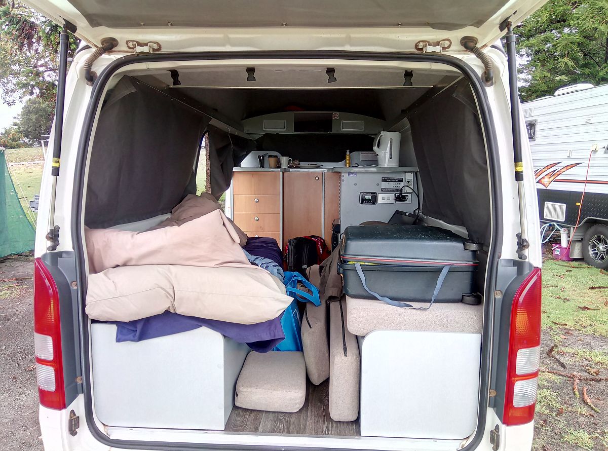 Mein Hobbit, ein Toyota Hiace. Reichte vollkommen. Lediglich Kühlschrank, Geschirr und Wasserkocher genutzt.