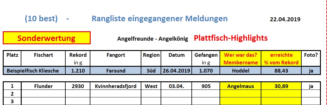 2. Platte gab es auch, ich weiß nicht genau, hatte so zarte rote Punkte, ich denke es ist eine Flunder ??? gefangen am 03.04. / 0.905 kg und 47 cm