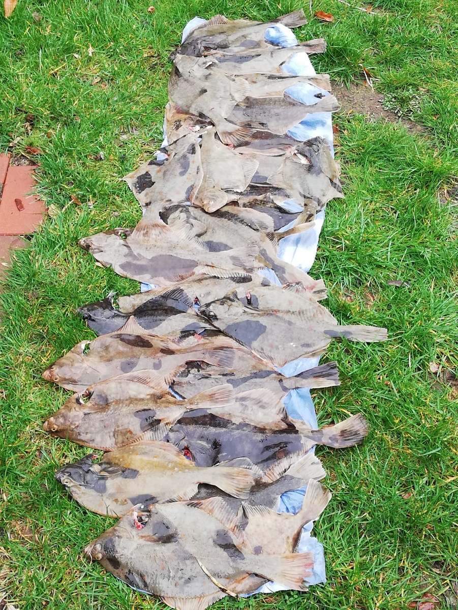 Nach etwa zwei Stunden war die ganz große hektische Phase wieder vorbei, aber immer noch kamen regelmäßige Bisse und davon zum Glück viele, die wir auch verwerten konnten. Bis Mitternacht haben wir dann Platten eingesammelt, so dass insgesamt 28 Exemplare den Weg in unseren Eimer fanden. Man, der hatte aber auf dem Rückweg ordentlich Gewicht. Etliche deutlich über 30 cm, die größten waren so 37 - 38 cm.