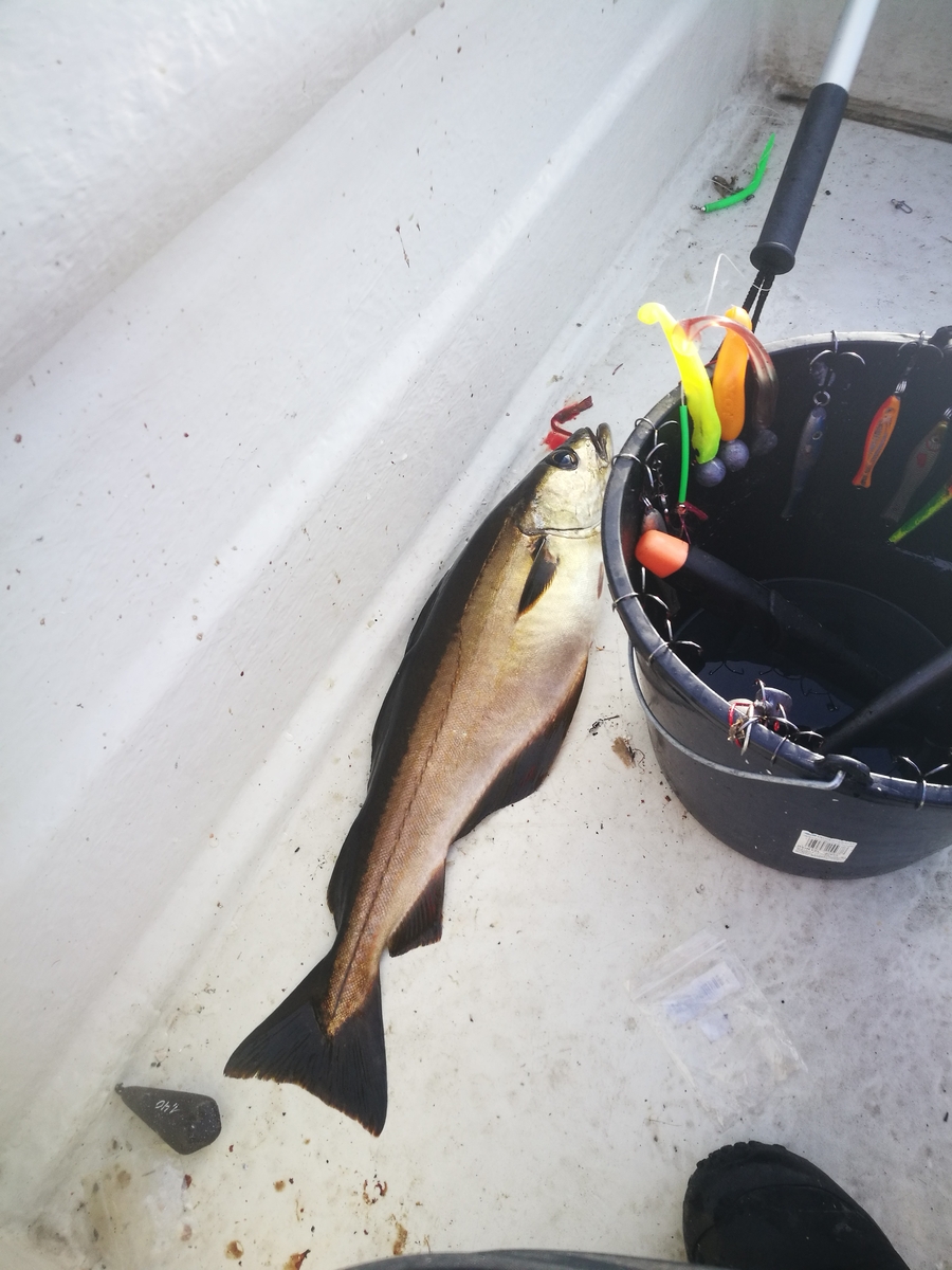 Heute morgen bin ich um 3.30 Uhr hoch, das windfenster, welches sich bis 10 Uhr bilden sollte nutzen. Also um 4.30 Uhr war ich auf dem.Boot, aber es war immer noch eine fette Restdündung von den letzten Tagen. Ich entschloß mich auf der sicheren Seite zu bleiben und fuhr geschützte Stellen im Windschatten, bzw Dünungsschatten an. Dort konnte ich auch nach 2 stunden den ersten 3,5 kg Pollack landen. Geile Nummer. Doch die Stelle ergab keine weiteren Fische. Also weiter anfahren, aich dort Fehlanzeige. Dann Plan B ... Schleppen durch die Brücke in die Schären rein, plötzlich knallte es ... Dorsch ... es folgten zwei weitere. So hörte ich um 10 Uhr auf , da der Wind wieder voll zuschlägt. Nachher gehen wir wandern .... Den Fisch gibt es gleich zum Mittag ....