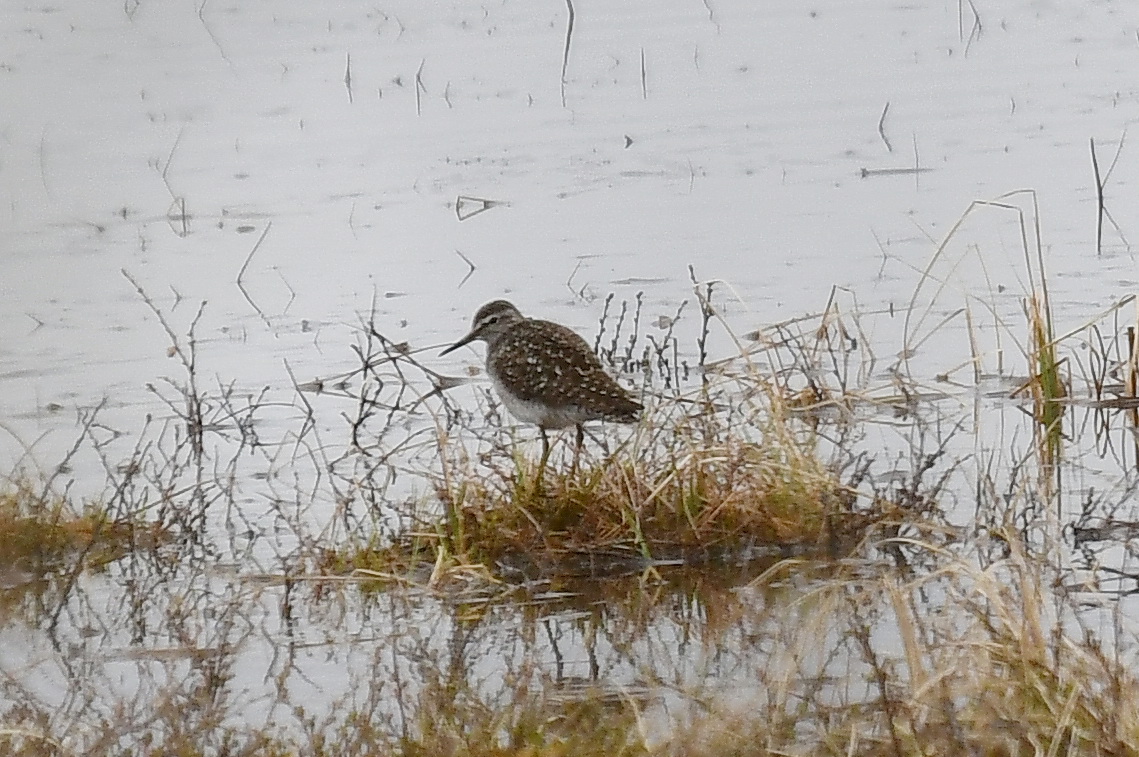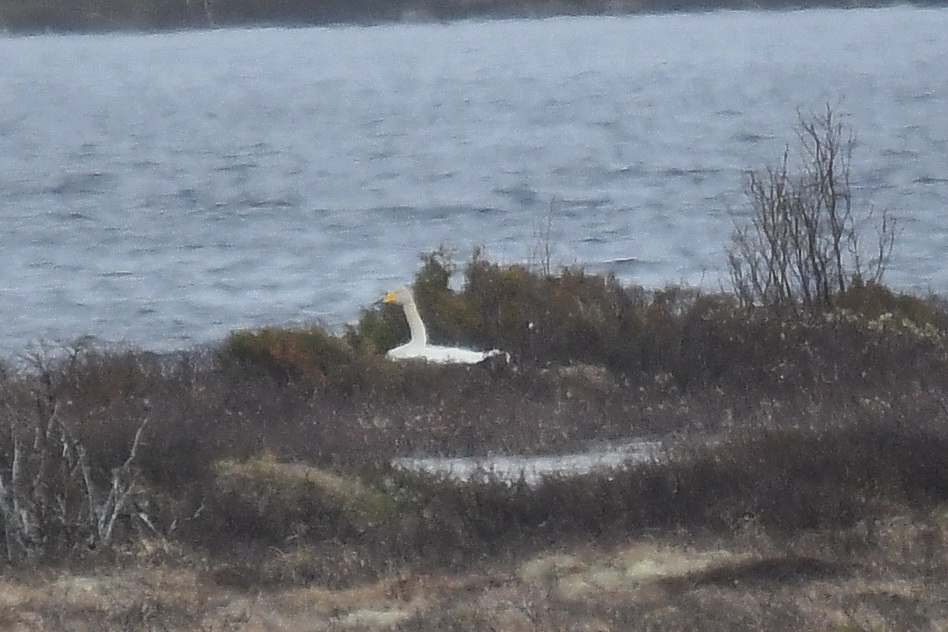 Ein Singschwan beim Brüten (Nicht unser Höckerschwan!) und etwas näher eine Limikole, welche weiß ich im Moment nicht).