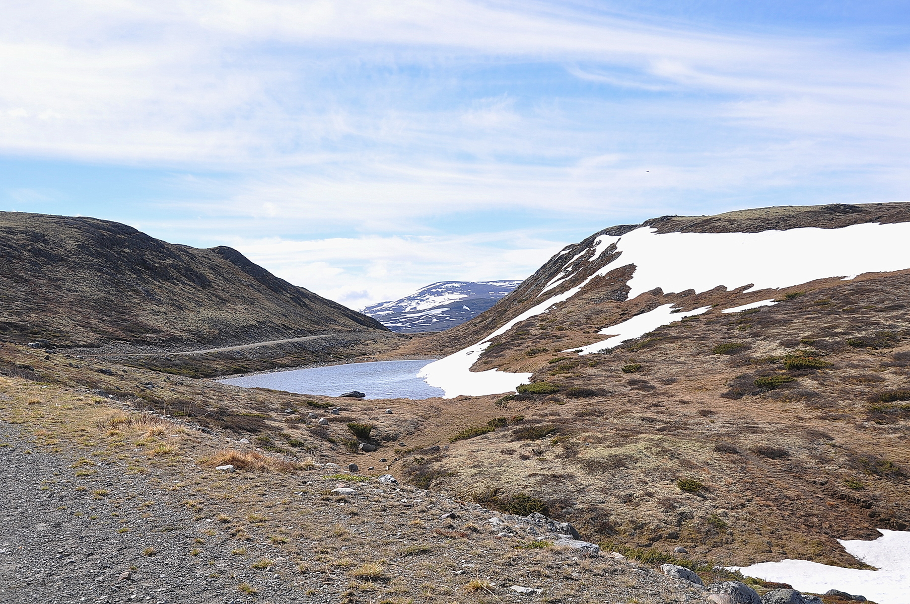 wenig weiter öffnet sich der Blick auf ein Gewässer -den Avsjøen, Trotz der großen Entfernung von etwa 400 m habe ich ein paar Bilder gemacht: