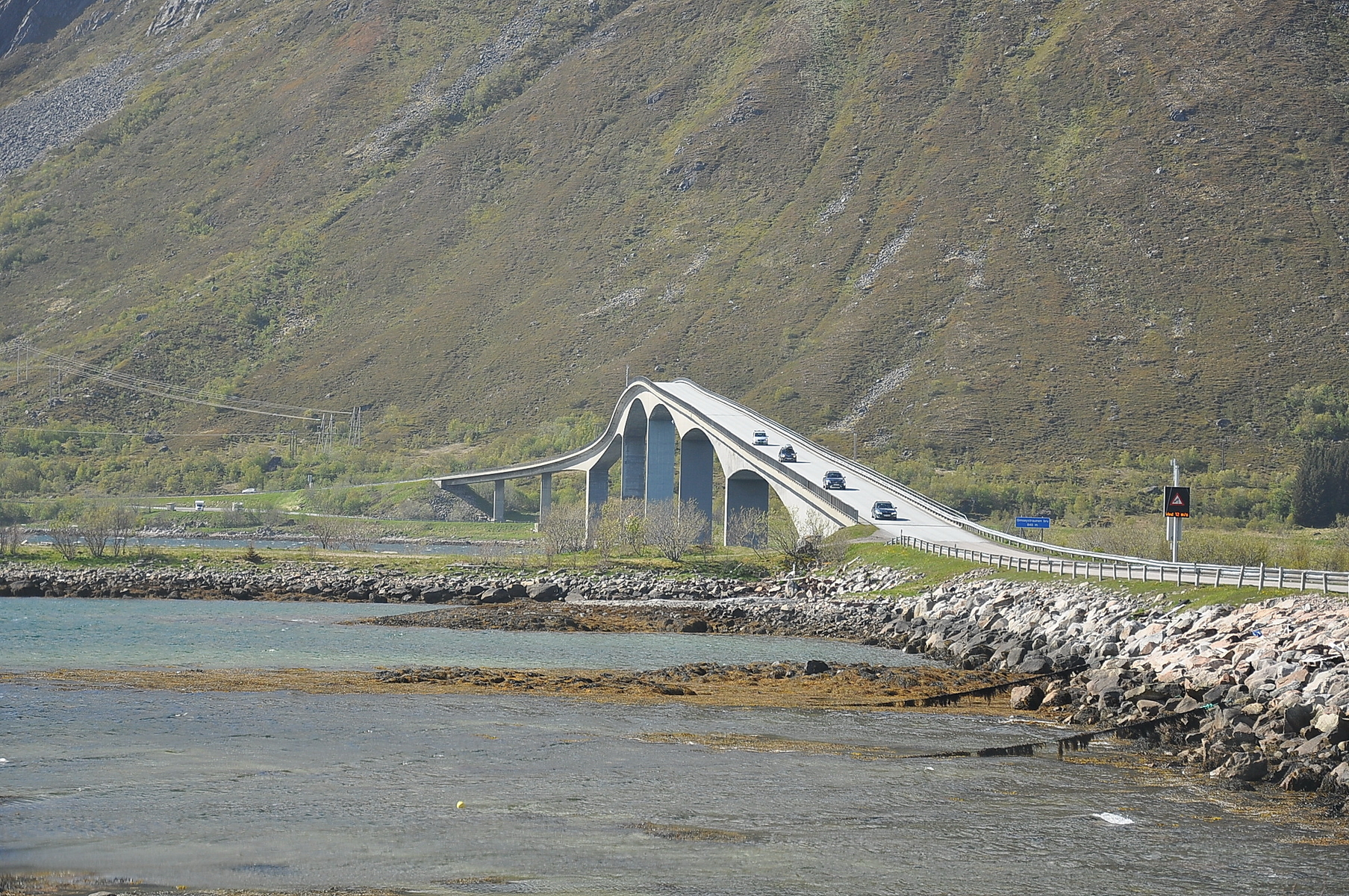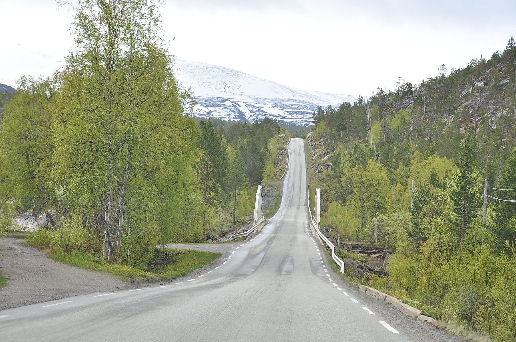 Dann wurde die Straße doch zum Teil recht schmal und es waren Ausweichstellen, gekennzeichnet durch das Verkehrsschild mit dem "M" (Møteplass), am Rand vorhanden.