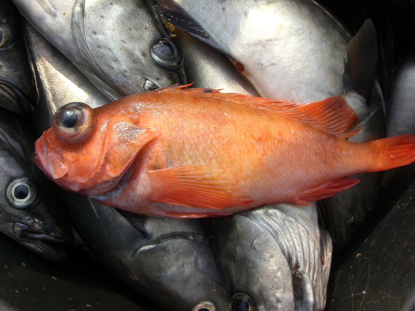 [FONT="]An die Oberfläche kommt ein 50cm Leng. Arno hat beim Pilken noch einen kleinen Rotbarsch gefangen.[/FONT]