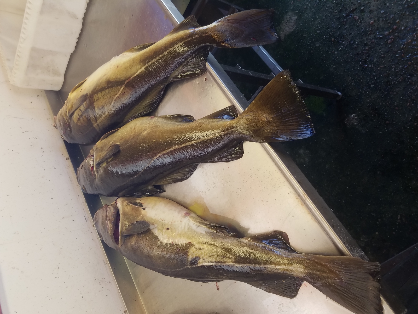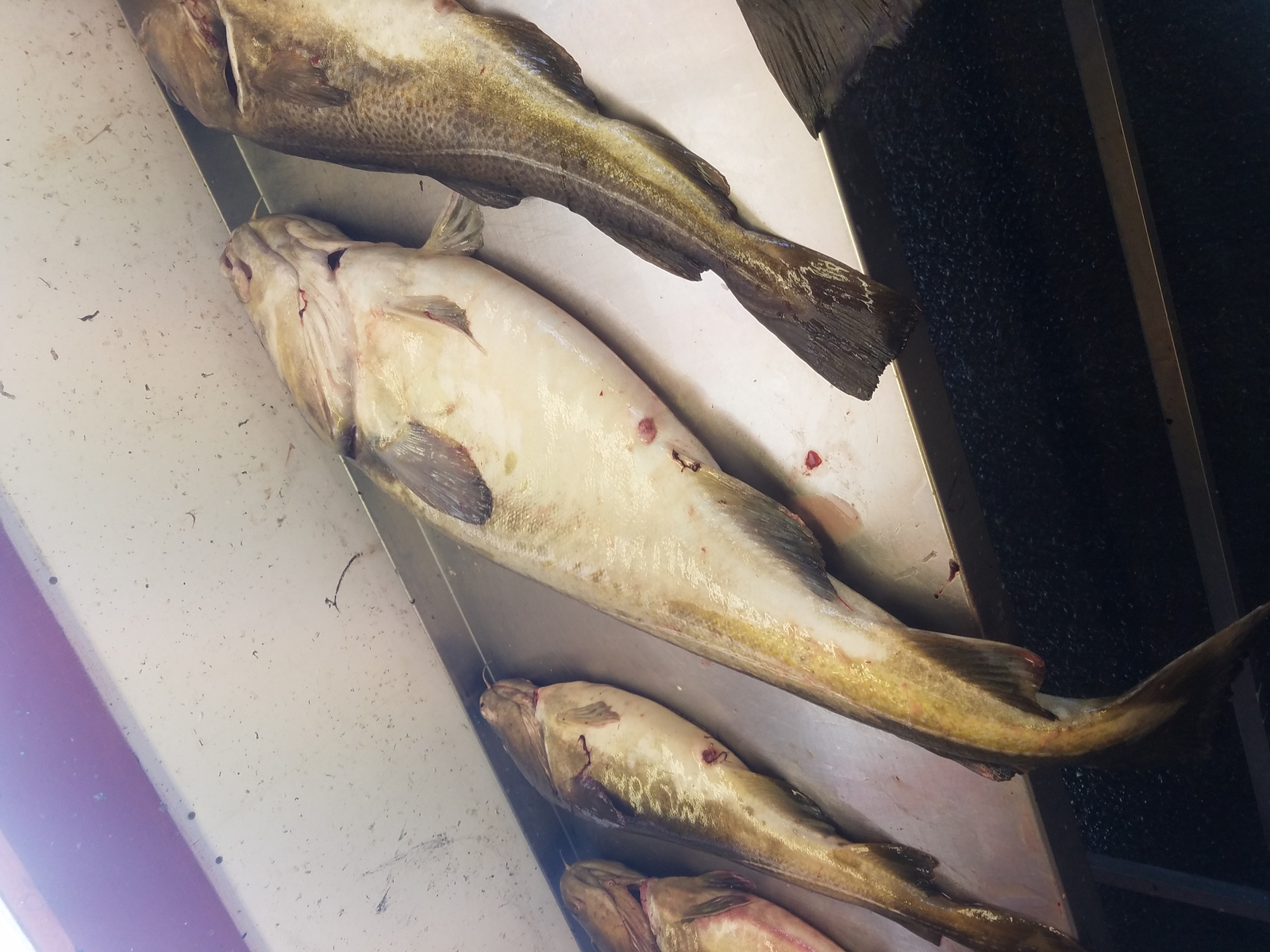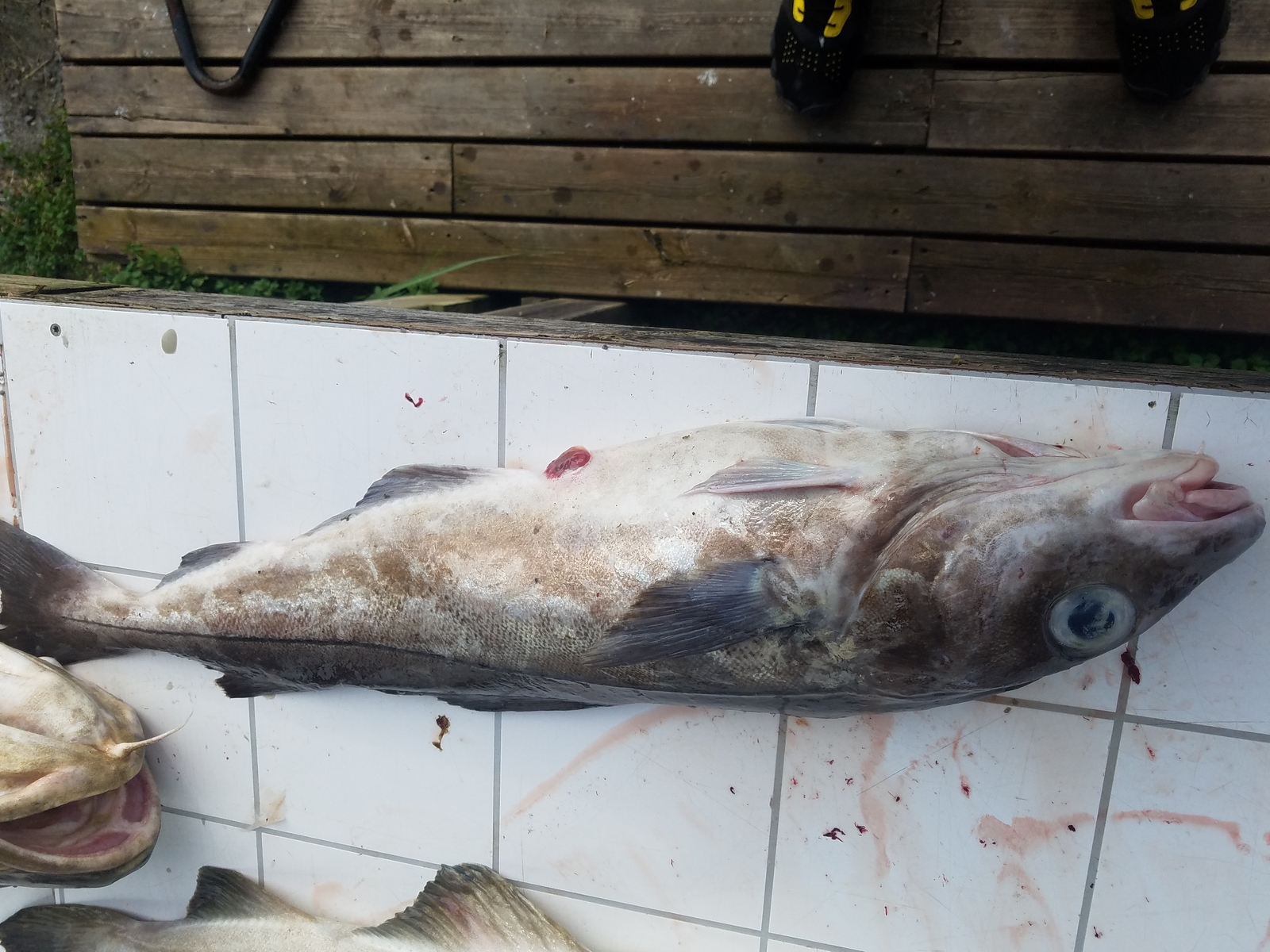 Beim Abklappern mit Heringsfetzen (PommernHeringe mitgebracht) ging erst ein 70 cm kleiner Mann(Seehechtmilchner) an den Haken.