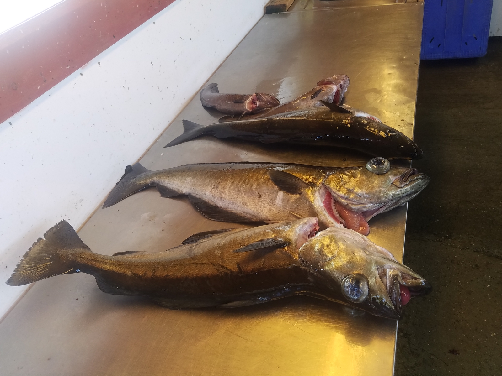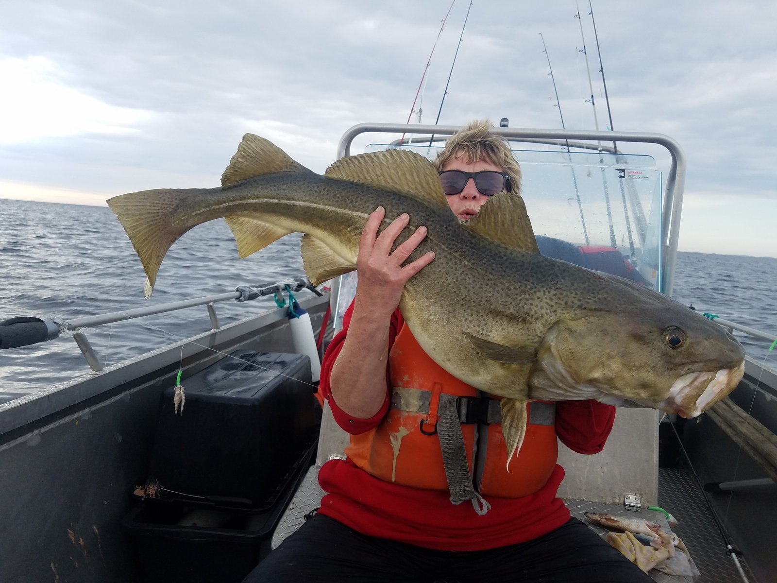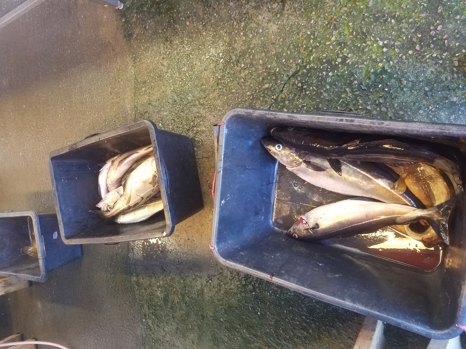 Beim Abklappern mit Heringsfetzen (PommernHeringe mitgebracht) ging erst ein 70 cm kleiner Mann(Seehechtmilchner) an den Haken.