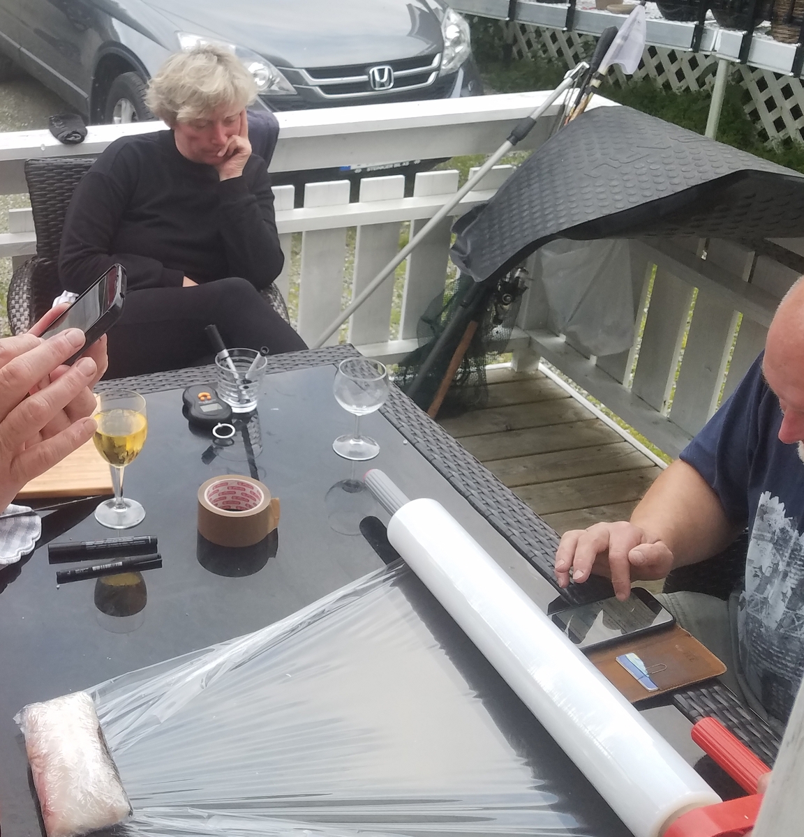Aber das Seehechtmahl war gesichert, mit Zitronenpfeffer gewürzt und in Maismehl gewälzt ging es zusammen mit Zwiebel, getrockneten Tomaten in den heißen Butterschmalz und danach in die gierige Futterluke.