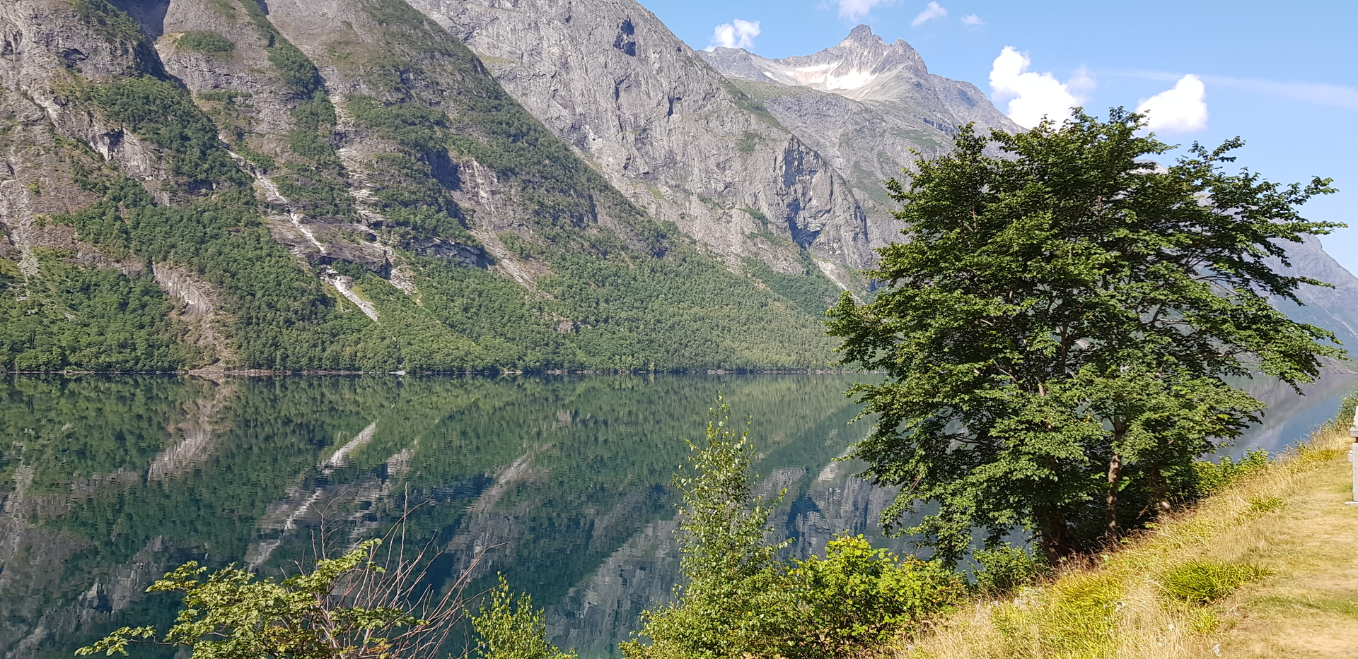 Die Spiegelungen sind immer wieder tollWenn man dieses kleine beeindruckende Naturschauspiel hinter sich gelassen hat, geht es nach kurzer Fahrt rechts zum Mardalsfossen weg.