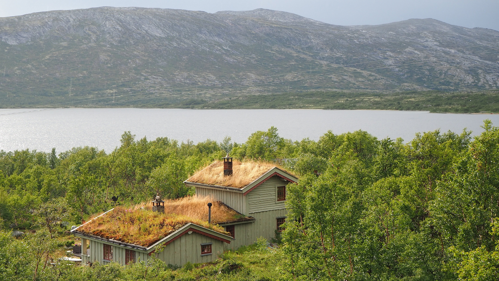 Die Temperaturen waren in der Zwischenzeit um gute 15 grad gefallen. Wie gut das wir lange Sachen und warme Socken dabei hatten. Von hier oben ging es dann langsam und stetig Berg ab. An vielen kleinen abgelegenen Häuschen vorbei und weiter durch das Litledalen welches sehr unter der Trockenheit gelitten hat. Ausgetrocknete Fulßläufe und Seen sind die Folge. Niedrigwasser im Stausee welcher das Litledalen speist.