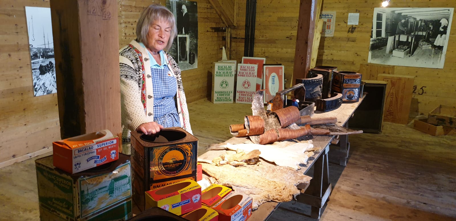 Sylvia erklärte uns die Geschichte rund um den Klippfisch, als wäre es ihre eigene. Tief beeindruckend war vor allen die Tatsache das gerade zur Skrei Saison Frauen und Kinder über Jahrhunderte direkt am und im Wasser arbeiteten um die ausgenommenen Dorsche zu säubern und zur weiteren Verarbeitung vorzubereiten, während ihre Männer auf hoher See in teils sehr einfachen Booten für ausreichend Nachschub sorgten.